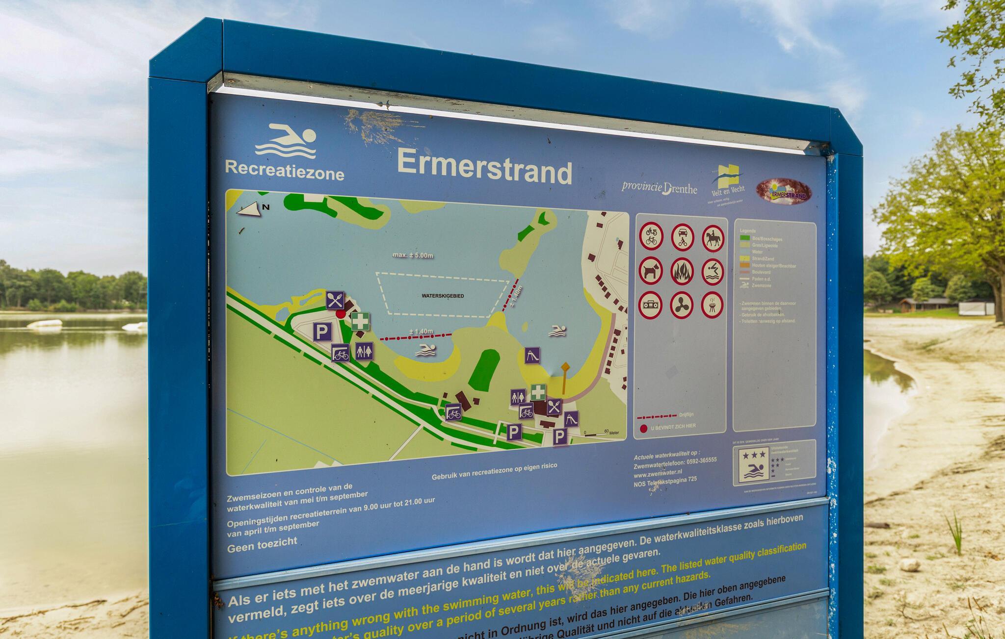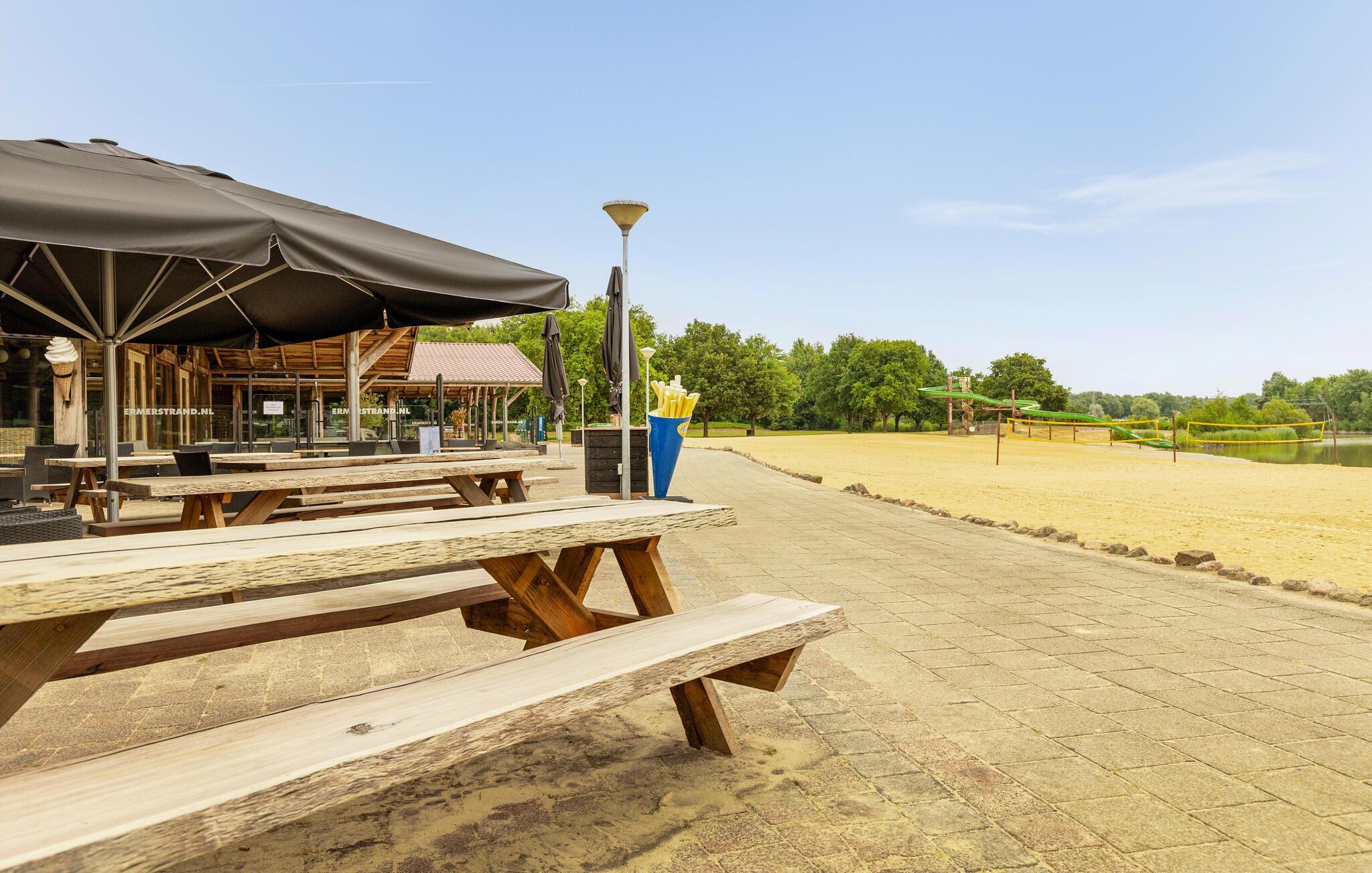 Der Ferienpark Ermerstrand bietet zahlreiche Freizeitmöglichkeiten direkt vor der Tür. Spazieren Sie zum nahe gelegenen Badesee mit Sandstrand und probieren Sie die Wasserskibahn oder die große Wasserrutsche. Kinder freuen sich über Spielplätze und viel Platz zum Toben. In der Umgebung finden Sie zudem schöne Rad- und Wanderwege durch die Natur Drenthes. Unternehmen Sie Ausflüge in die Städte Emmen oder Coevorden, besuchen Sie den Wildlands Adventure Zoo oder entdecken Sie die typischen Hünengräber der Region.