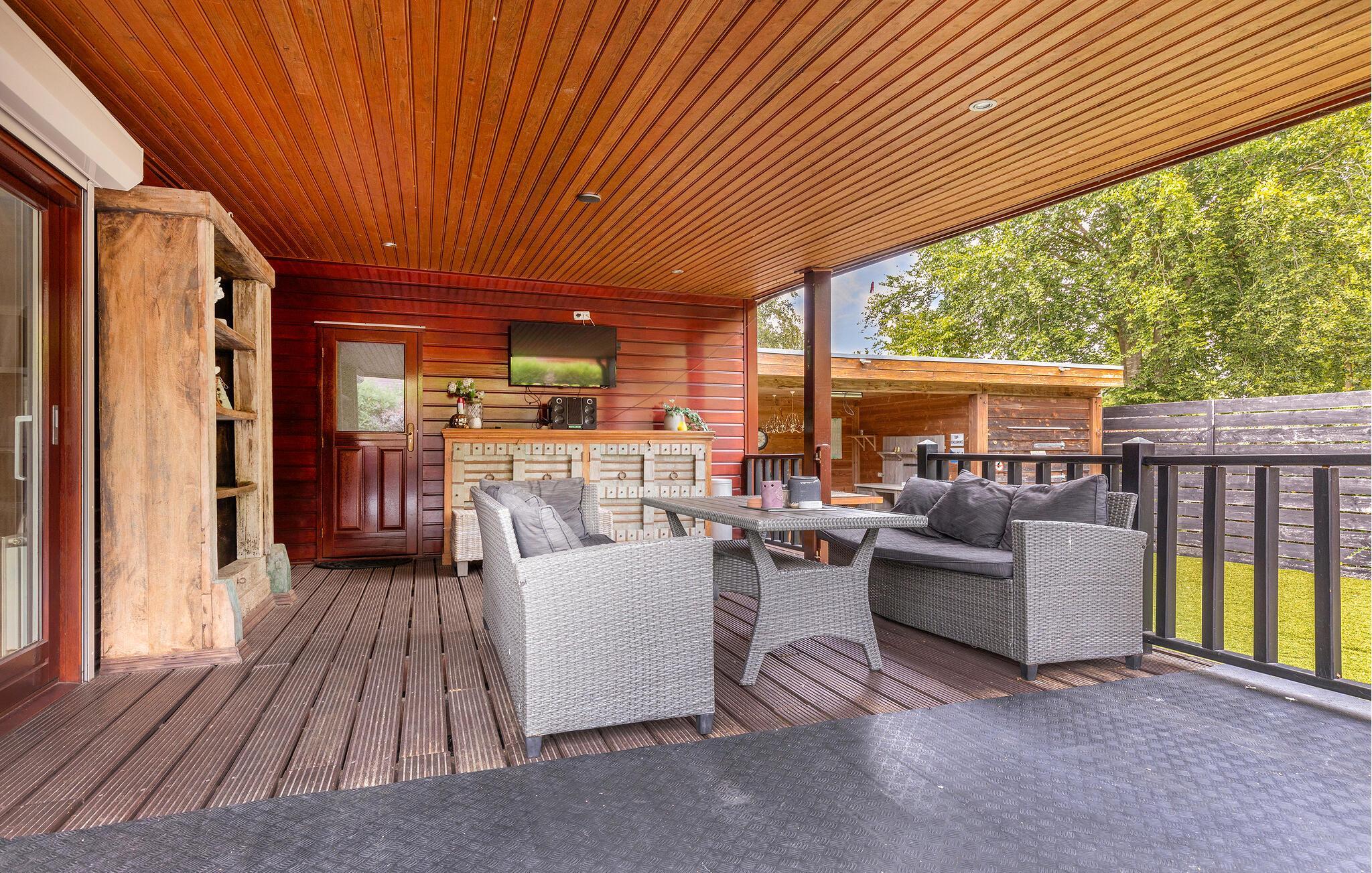 Nehmen Sie Platz auf der überdachten Terrasse mit gemütlichen Sitzgruppen. Starten Sie den Tag mit einem Frühstück im Freien und entspannen Sie auf den bereitstehenden Liegestühlen. Der Garten ist liebevoll gestaltet und bietet viel Privatsphäre.