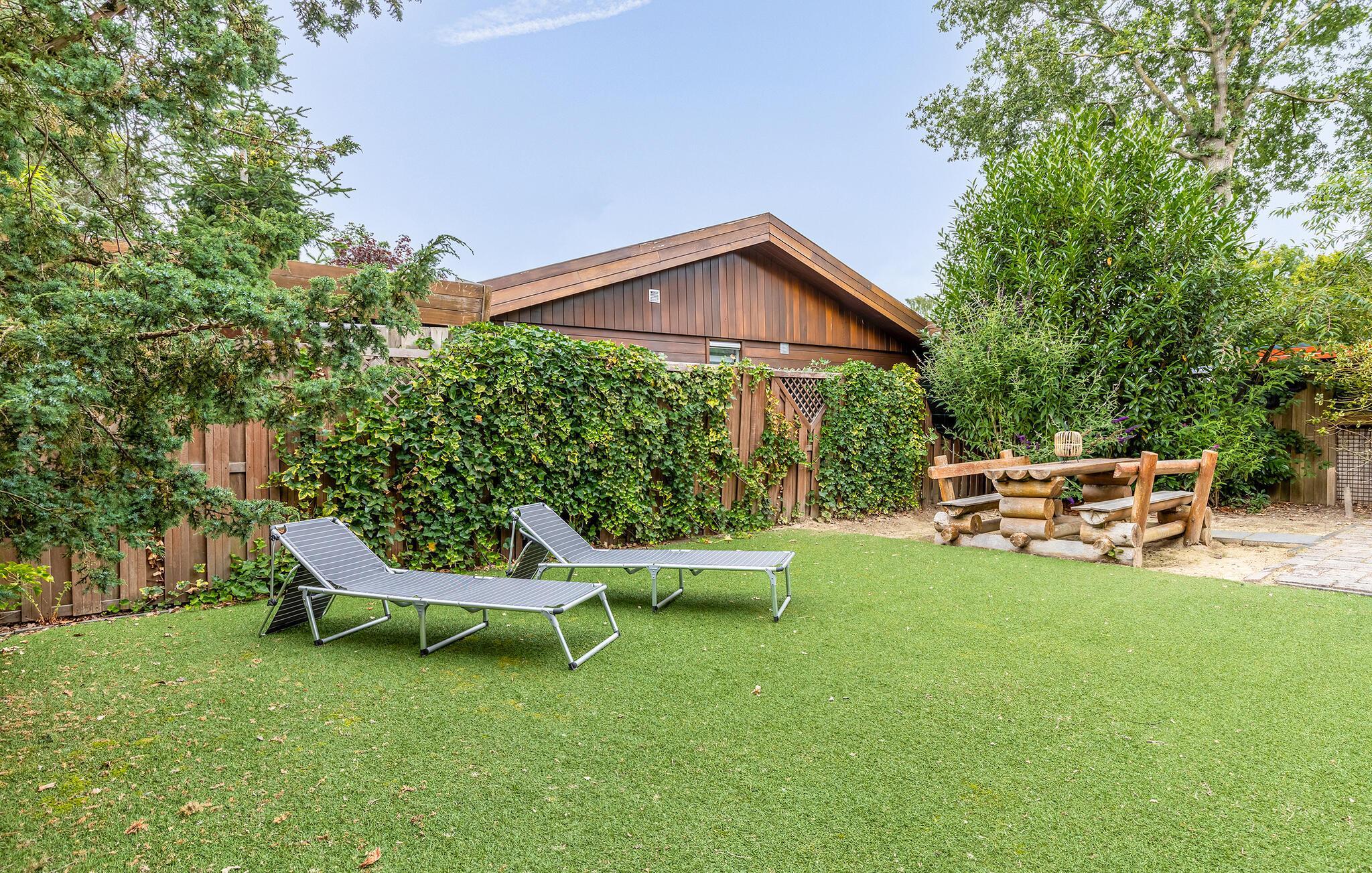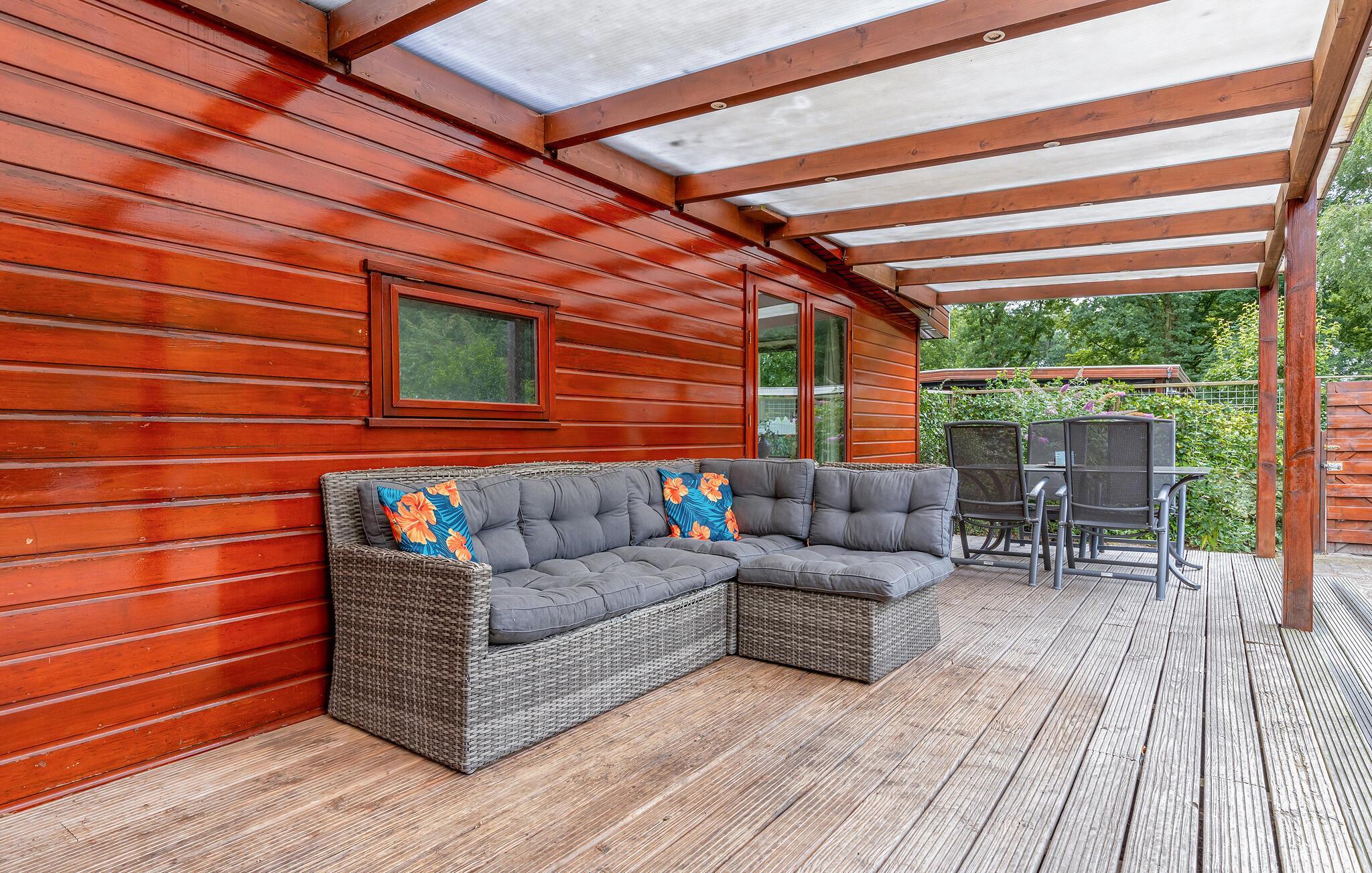 Nehmen Sie Platz auf der überdachten Terrasse mit gemütlichen Sitzgruppen. Starten Sie den Tag mit einem Frühstück im Freien und entspannen Sie auf den bereitstehenden Liegestühlen. Der Garten ist liebevoll gestaltet und bietet viel Privatsphäre durch Hecken und Bäume.