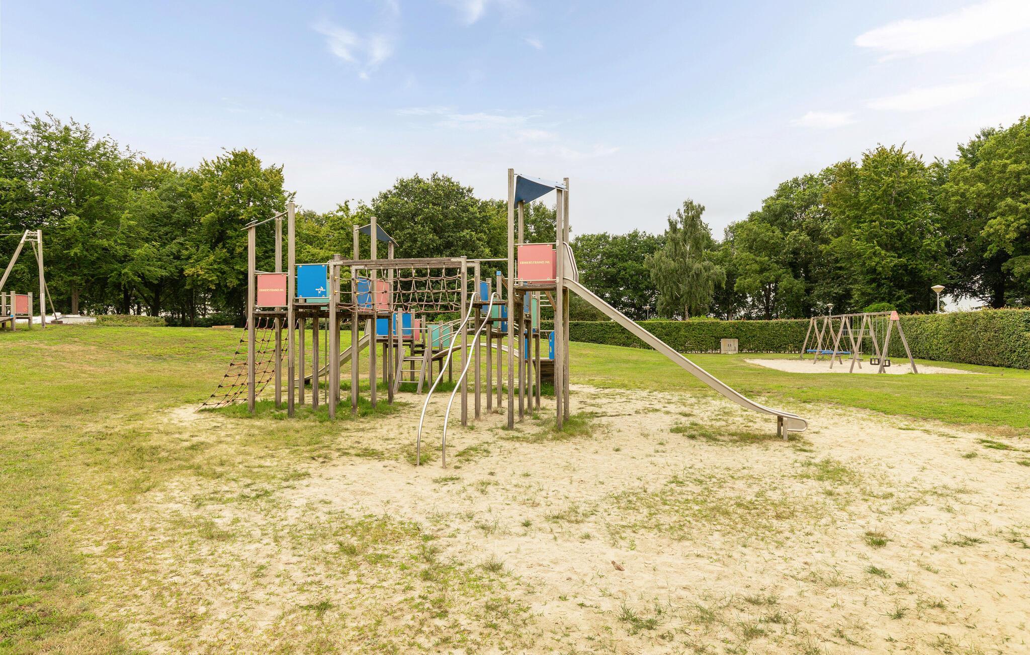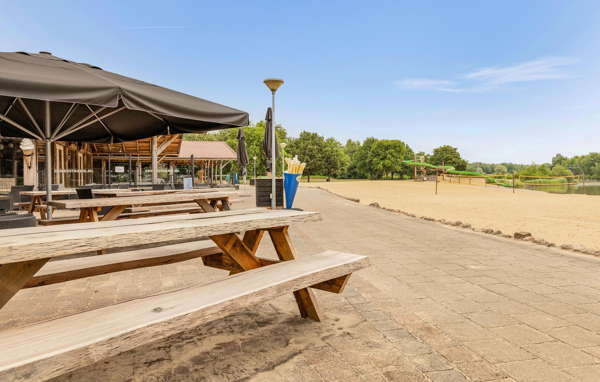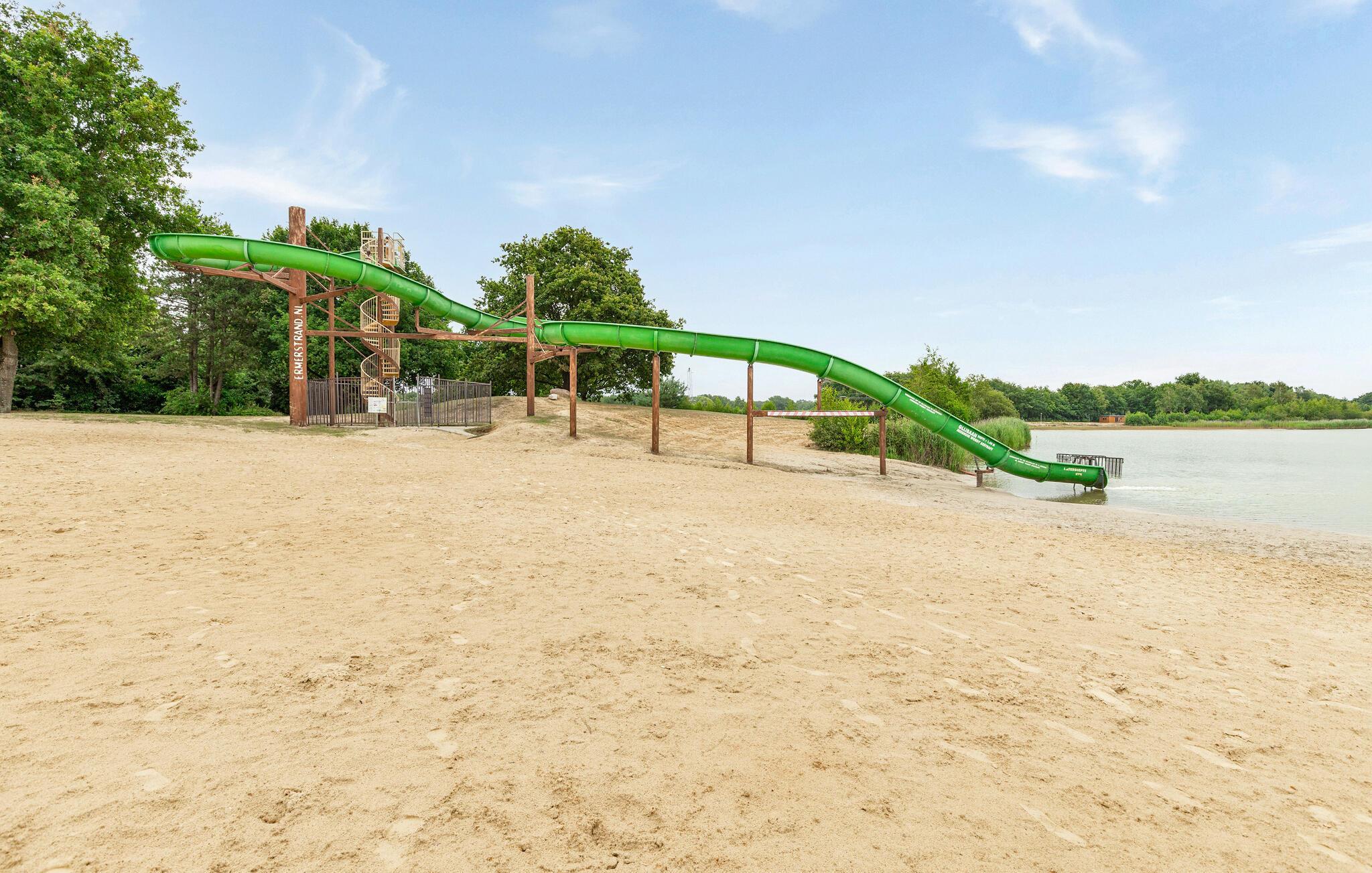 Der Ferienpark Ermerstrand bietet zahlreiche Freizeitmöglichkeiten direkt vor der Tür. Spazieren Sie zum nahe gelegenen Badesee mit Sandstrand und probieren Sie die Wasserskibahn oder die große Wasserrutsche. Kinder freuen sich über Spielplätze und viel Platz zum Toben. In der Umgebung finden Sie zudem schöne Rad- und Wanderwege durch die Natur Drenthes. Unternehmen Sie Ausflüge in die Städte Emmen oder Coevorden, besuchen Sie den Wildlands Adventure Zoo oder entdecken Sie die typischen Hünengräber der Region.