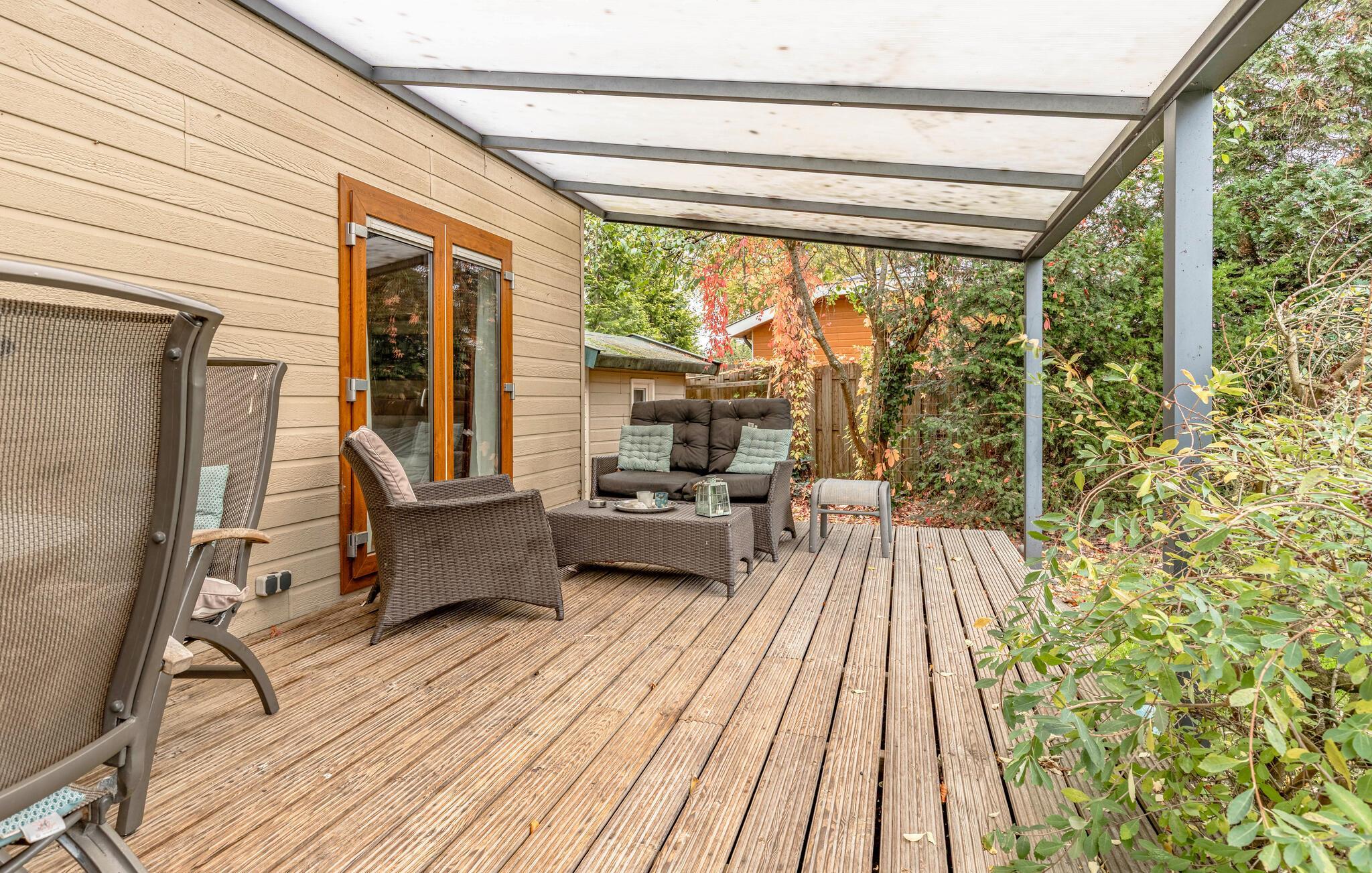 Nehmen Sie Platz auf der möblierten, überdachten Terrasse. Starten Sie den Tag mit einem Frühstück im Freien und entspannen Sie sich nach allen Regeln der Kunst. Der Garten ist liebevoll gestaltet und bietet viel Privatsphäre durch Hecken und Bäume.