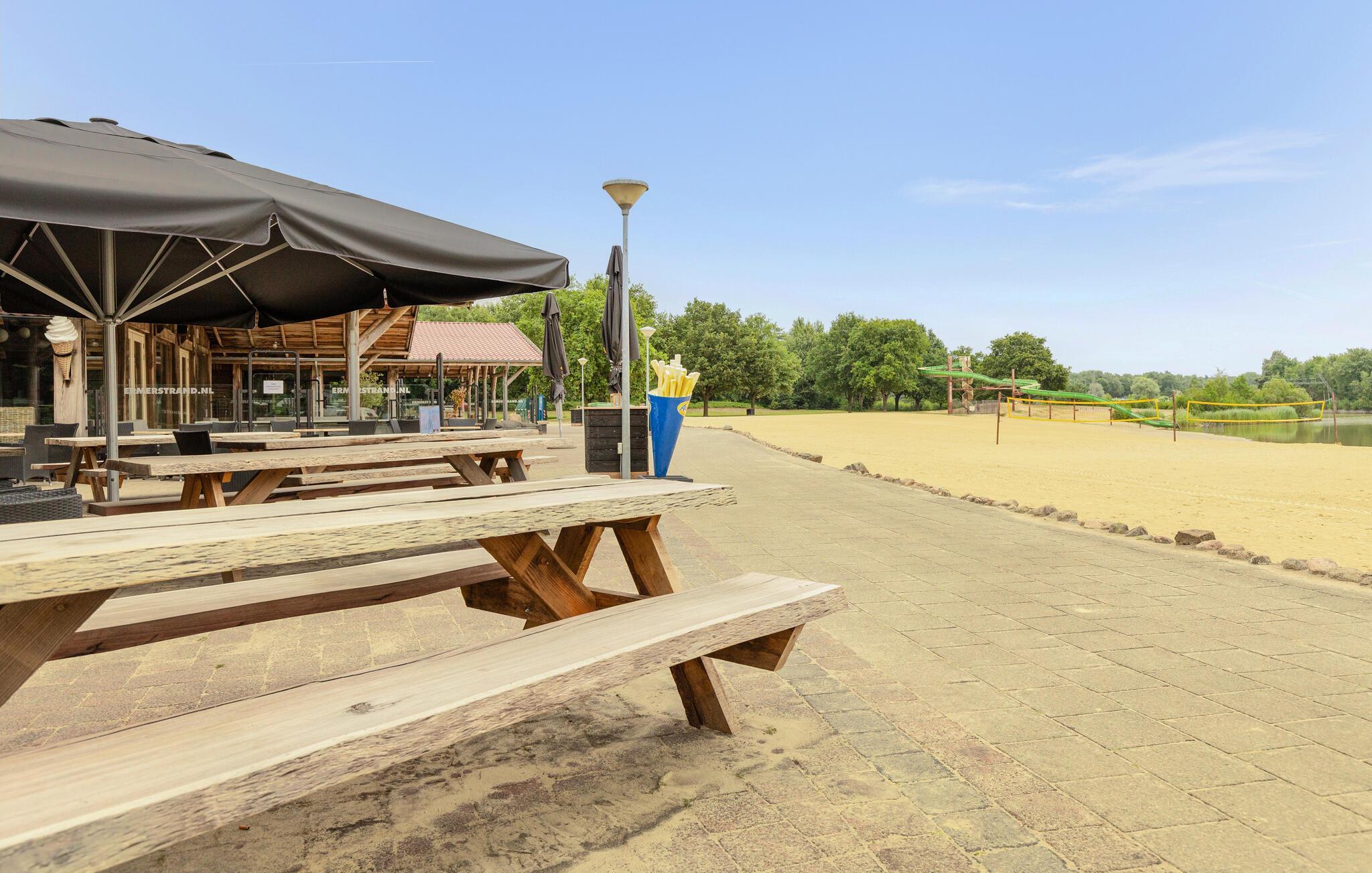 Der Ferienpark Ermerstrand bietet zahlreiche Freizeitmöglichkeiten direkt vor der Tür. Spazieren Sie zum nahe gelegenen Badesee mit Sandstrand und probieren Sie die Wasserskibahn oder die große Wasserrutsche. Kinder freuen sich über Spielplätze und viel Platz zum Toben. In der Umgebung finden Sie zudem schöne Rad- und Wanderwege durch die Natur Drenthes. Unternehmen Sie Ausflüge in die Städte Emmen oder Coevorden, besuchen Sie den Wildlands Adventure Zoo oder entdecken Sie die typischen Hünengräber der Region.