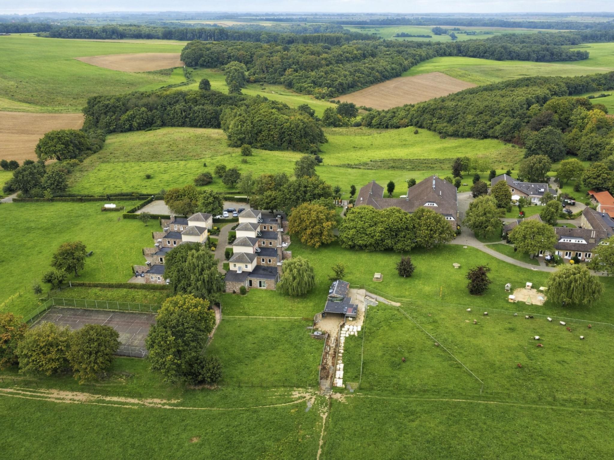 Gulpen 18 km from Maastricht: Comfortable resort "Bungalowpark Landsrade", surrounded by trees and fields. Outside the resort, 3 km from the centre of Gulpen, in a quiet position, 50 m from the edge of the forest, in the countryside. For shared use: meadow. Tennis (extra), table tennis, children's playground, petting farm. In the complex: reception, billiard table. Central parking spaces. Supermarket 2 km, thermal baths "Thermae 2000" 15 km. Golf course (18 hole) 1.3 km. Nearby attractions: Gemeentegrot Valkenburg 15 km, Labyrint Drielandenpunt 18 km, Vrijthof 21 km, Nationaal Park De Eifel (DE) 68 km. Hiking paths: G10 Gulpen-Wittem-Reijmerstok 8 km. Please note: the photograph shows a typical example. Additional accommodations can be booked. All houses/apartments are individually designed/furnished.