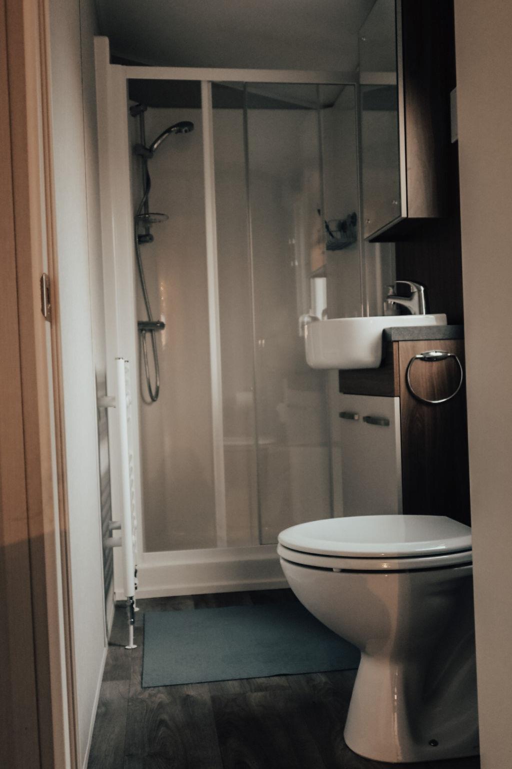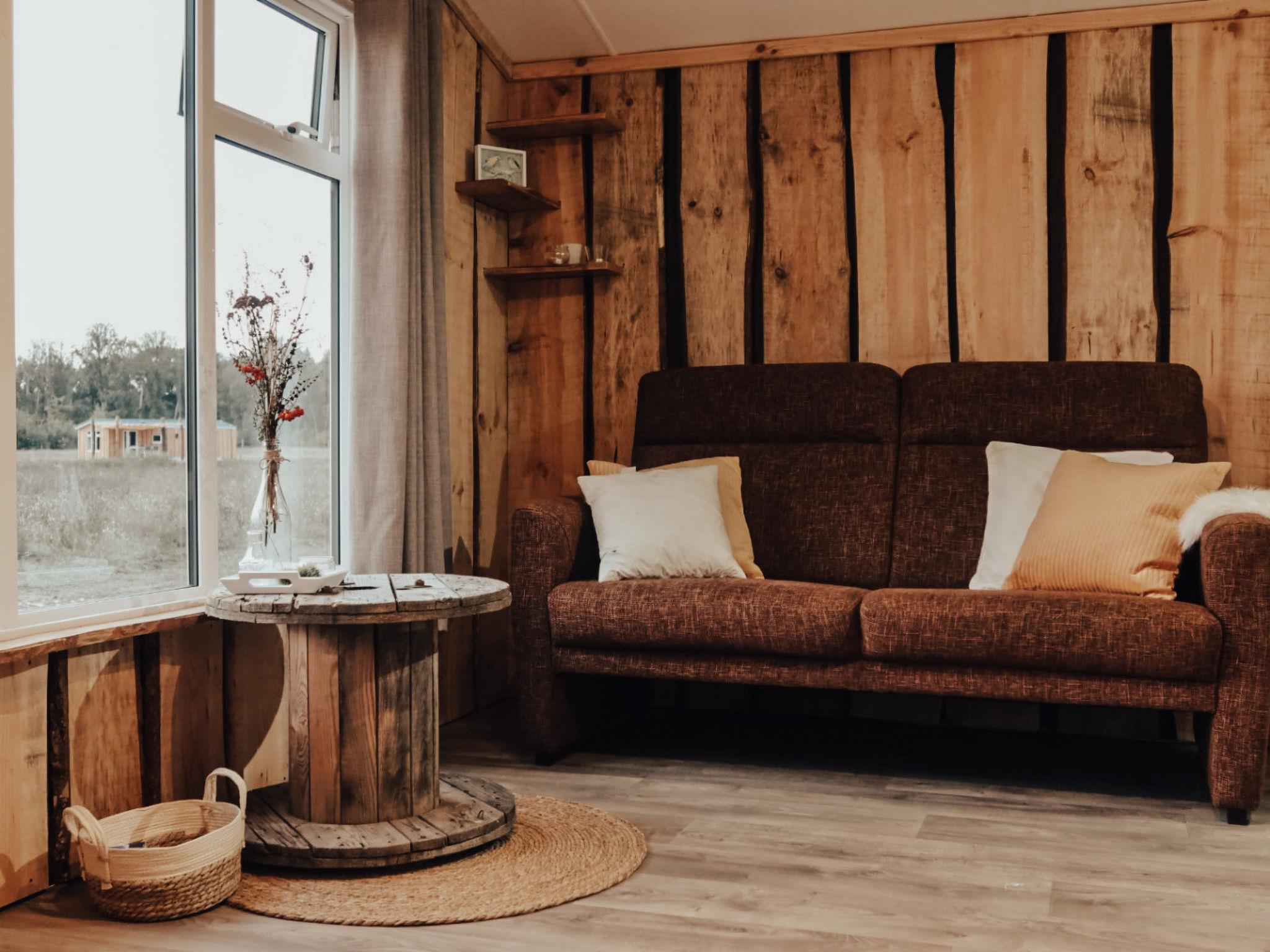 The chalet has a lovely living room with a seating area and a dining table, where you can relax after a day outdoors. Through the double garden doors, you step directly onto the terrace, where you can enjoy the view of nature. The chalet is equipped with all conveniences, such as free WiFi, an electric stove for colder days and central heating. The kitchen is fully equipped, with a gas cooker, extractor hood, coffee maker and a fridge/freezer combination, so you have all the freedom to cook for yourself.