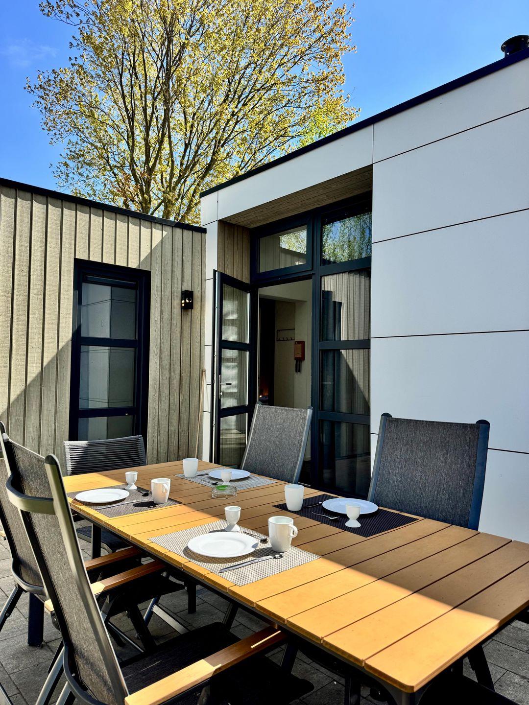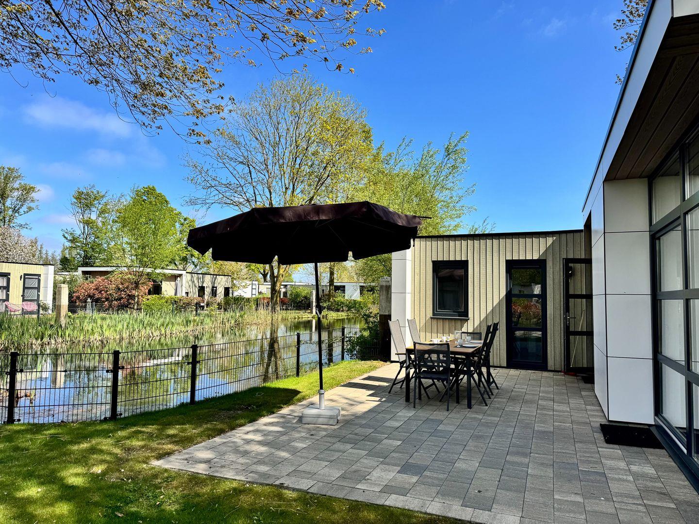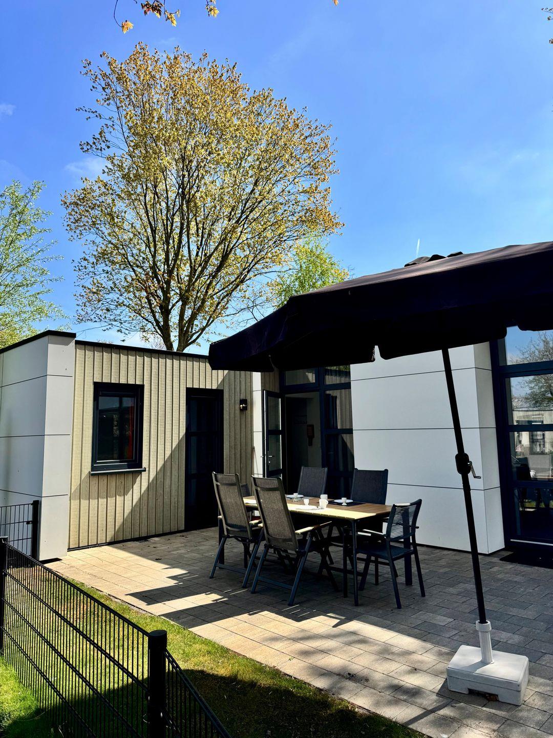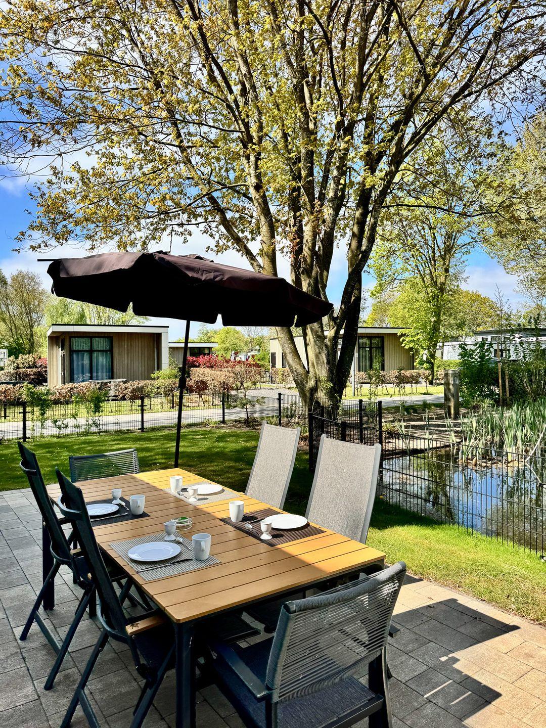 NEU: mit Zaun - Chalet am Wasser im EuroParcs Bad Hoophuizen: Modernes Ferienhaus für 6 Personen. Hundefreundlich, mit Terrasse – nur 100 m zum Veluwemeer!