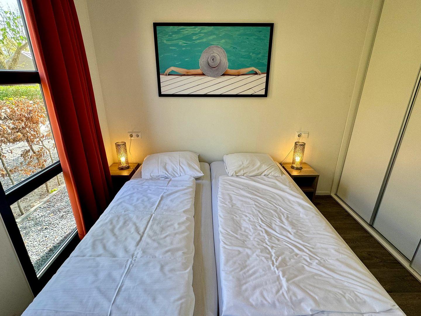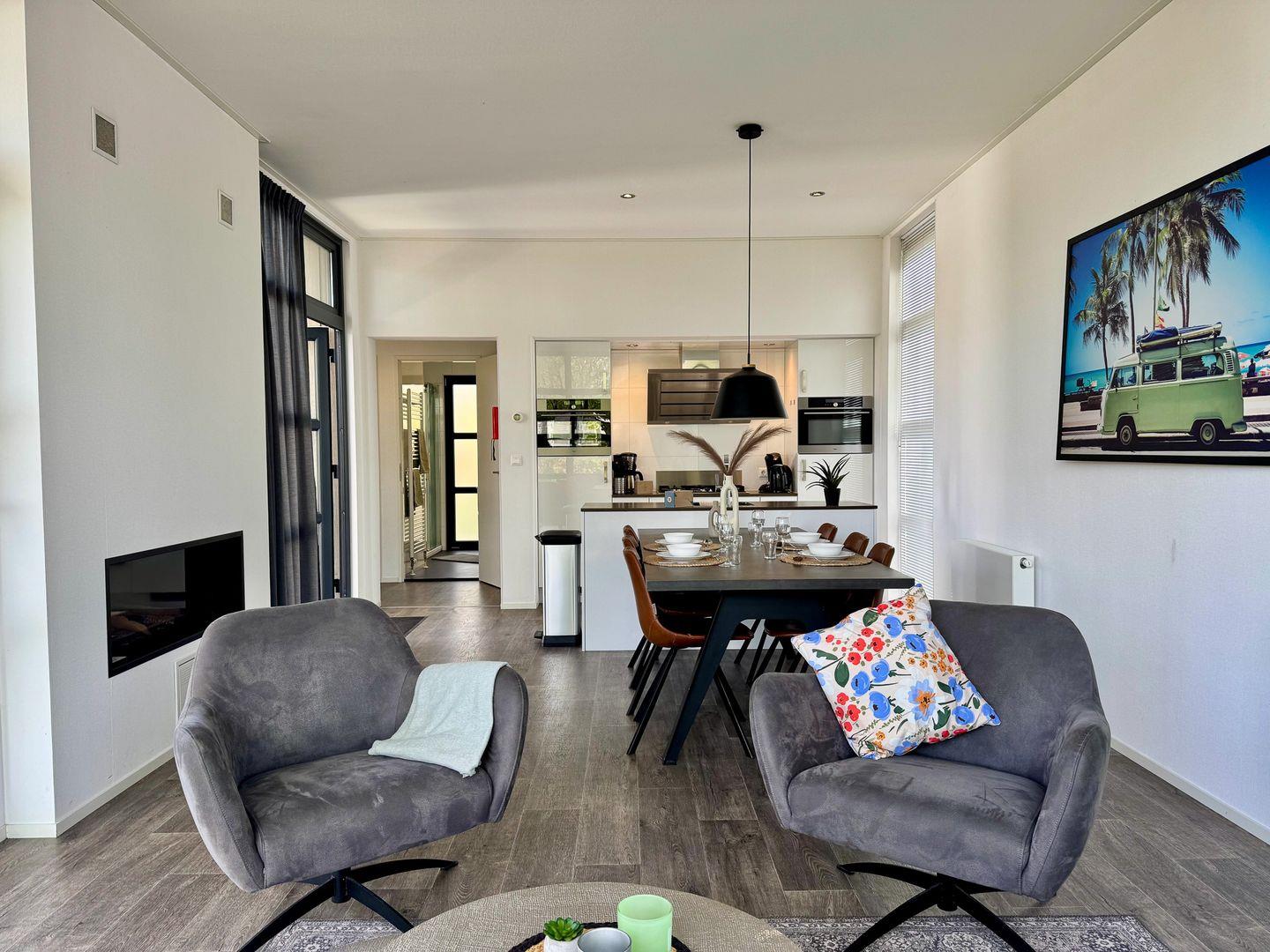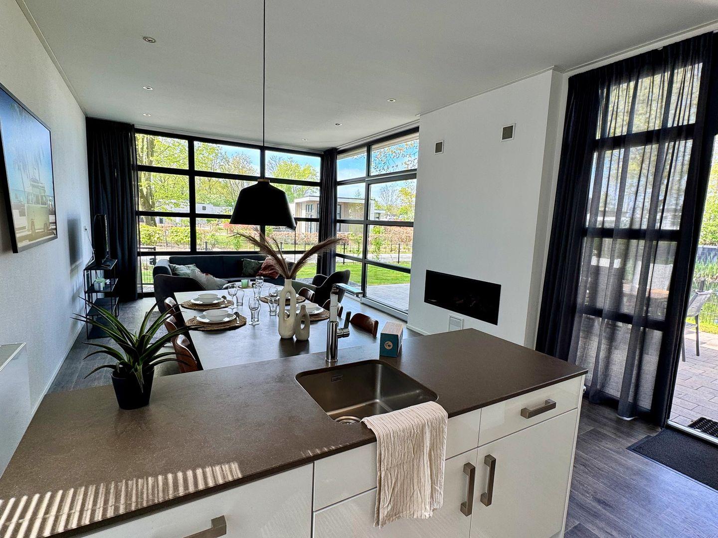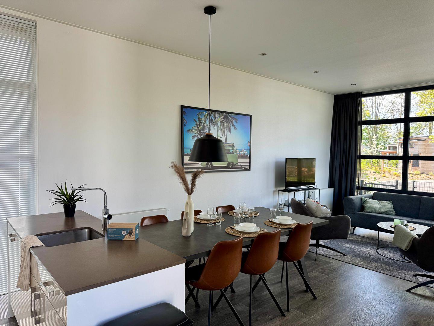 NEU: mit Zaun - Chalet am Wasser im EuroParcs Bad Hoophuizen: Modernes Ferienhaus für 6 Personen. Hundefreundlich, mit Terrasse – nur 100 m zum Veluwemeer!