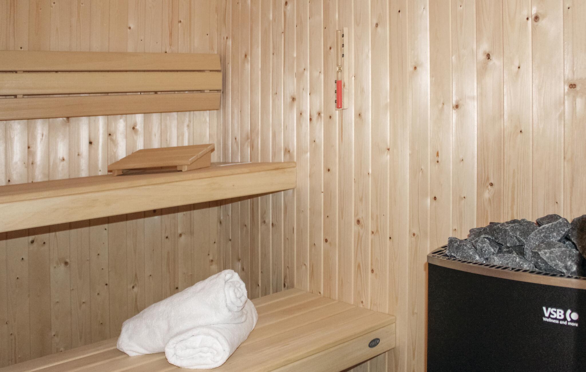 Genießen Sie Ihren Urlaub am Wasser in diesem komfortablen Ferienhaus mit Sauna.