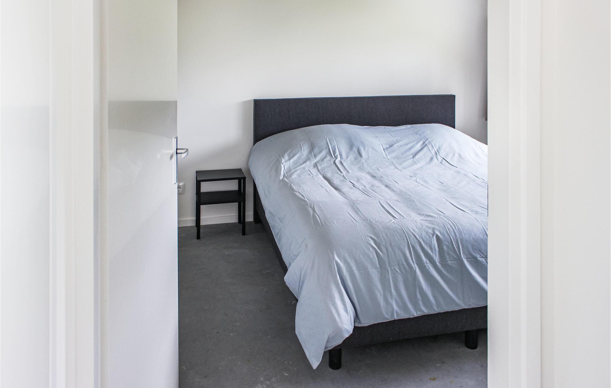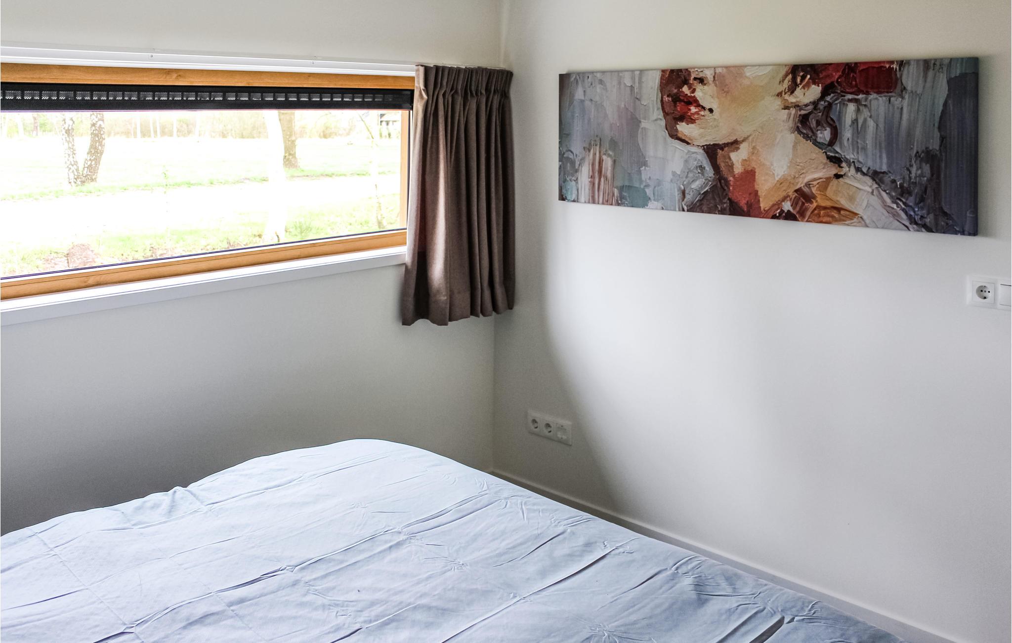 Es gibt zwei Schlafzimmer, von denen eines ein Doppel-Boxspringbett und zwei Einzel-Boxspringbetten für Sie bereit hält. Zudem freuen Sie sich über ein Badezimmer mit Dusche, Waschbecken und Toilette. Vom Wohnzimmer aus gelangen Sie durch die Schiebetüren auf die Terrasse, wo Sie den schönen Blick ins Grüne genießen können.