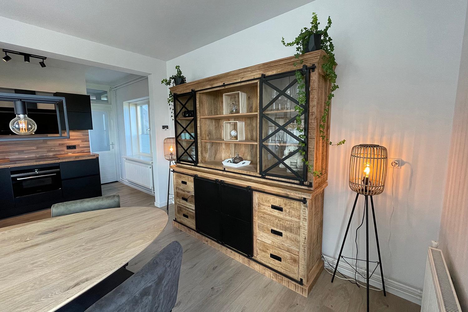 Das Wohnzimmer ist schön hell durch viele große Fenster und mit viel Liebe zum Detail eingerichtet, wie z.B. die dekorativen Kissen und die Bepflanzung im Zimmer. Ein Esstisch mit 6 Stühlen bietet Platz, um abends ein Spiel zu spielen, aber auch, um ein ausgiebiges Abendessen gemeinsam zu genießen. Die Küche ist mit allen modernen Geräten wie einer Kombi-Mikrowelle und einem Geschirrspüler für die einfache Zubereitung von Mahlzeiten ausgestattet.