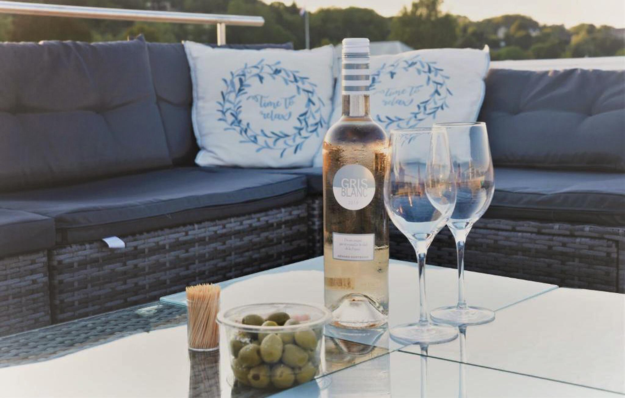Dieses Hausboot liegt an einem hübschen Jachthafen mit vielen Einrichtungen und einem fantastischen Restaurant in Laufnähe. Freuen Sie sich als Familie auf eine entspannte Zeit in diesem Hausboot, das Sie mit einer modernen n Einrichtung und Ausstattung empfängt. Genießen Sie den Komfort des lichtdurchfluteten Wohnraums, wo Sie gemeinsam kochen oder einfach auf dem Sofa entspannen können. Beginnen Sie Ihren Tag mit einem schönen Frühstück auf der überdachten Terrasse oder genießen die Nachmittagssonne auf der Dachterrasse mit einem kühlen Getränk.