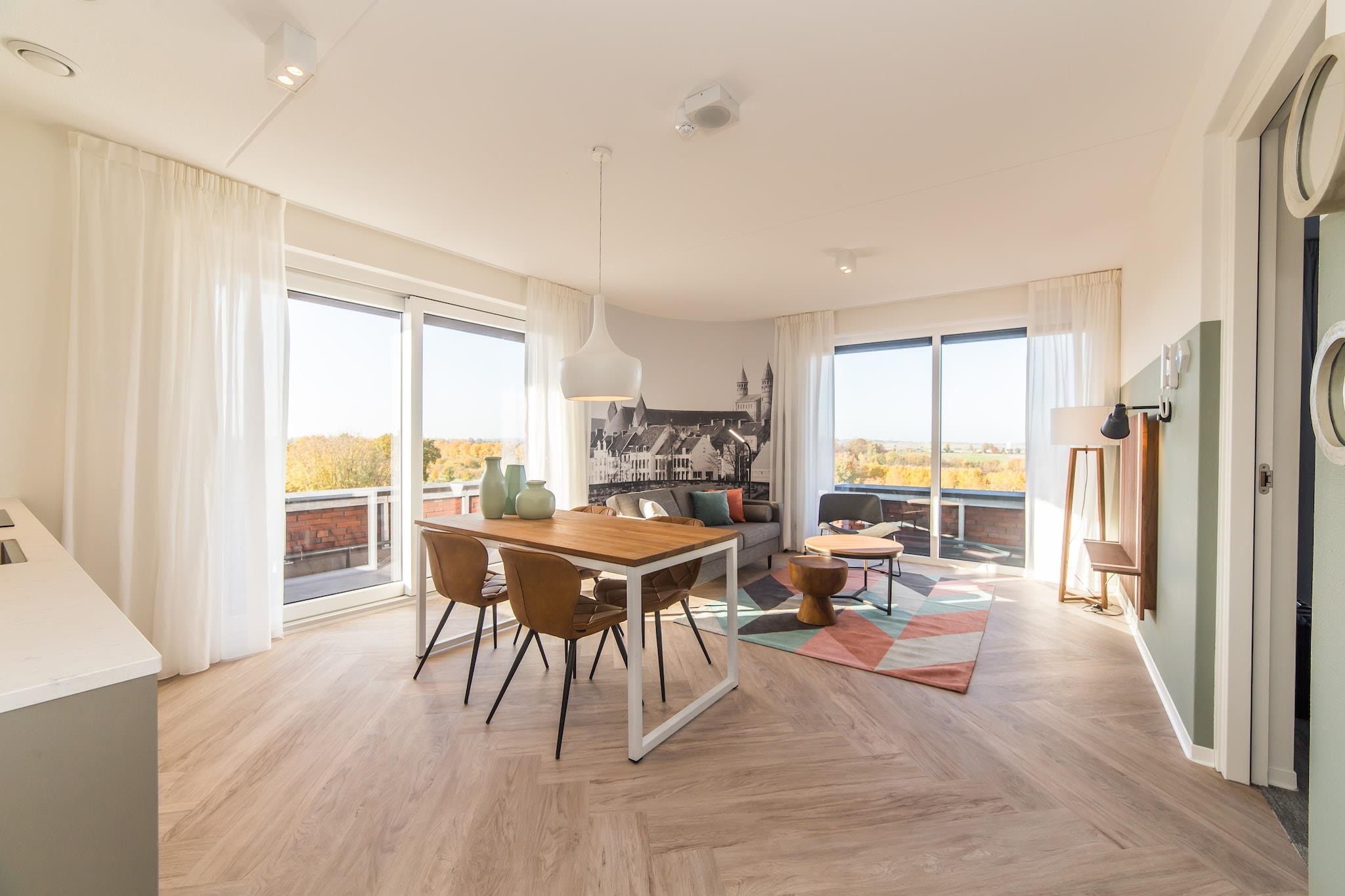 Panoramic Comfort in a 4-Star Hotel Setting Welcome to your sky-high retreat in the luxurious "De Prins van Oranje" hotel, perched within the lush Resort Maastricht. Located on the 4th floor or higher, this stylish panorama apartment offers sweeping views of the Belgian-Limburg countryside. Just 4 km from the vibrant city center of Maastricht, you'll enjoy the best of both worlds—peaceful surroundings and urban access. For a dining experience above the clouds, head to Rantree on the top floor, where skyline views meet culinary excellence. Spacious Living with Elegant Touches This thoughtfully designed apartment features two serene bedrooms and two modern bathrooms, making it ideal for couples, friends, or families. The open-plan kitchen is fully equipped for your culinary needs, and the inviting living room opens to a private balcony or terrace—perfect for morning coffee or an evening glass of wine. With tasteful décor, two TVs, and hotel amenities like elevators and central parking, every detail is in place for a comfortable stay. Bring Your Pet & Explore Together Yes—your furry companions are welcome too! Stroll with your dog along scenic Dousberg trails, relax at nearby pet-friendly cafés, or visit the off-leash zones in Maastricht’s city parks. Whether you’re sipping wine at a local terrace, hiking with your pup, or soaking up panoramic sunsets, this apartment offers an unforgettable stay—for you and your four-legged friend.
