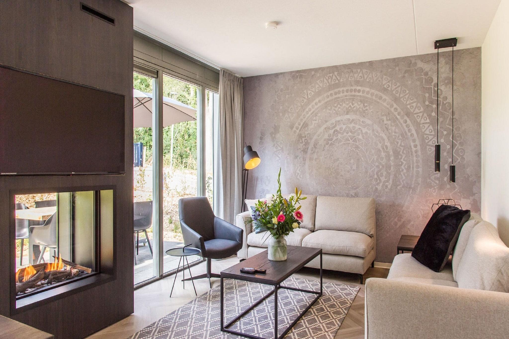 Modern Lakeside Luxury with Private Wellness Arrive in style at the foot of Maastricht’s Dousberg and be welcomed by one of Resort Maastricht’s most exclusive villas. With sleek architecture, floor-to-ceiling glass walls, and designer interiors, this waterfront escape blends elegance with ultimate comfort. Gather in the spacious living room with a cozy fireplace or whip up meals in the gourmet kitchen with a cooking island. Each of the three bedrooms features its own en-suite bathroom, offering privacy and hotel-style luxury for couples, friends, or families. Private Sauna, Outdoor Kitchen & Pond Views Your villa’s rear opens to uninterrupted views of a serene pond, best enjoyed from your private jetty or the elevated balconies. Along the way, discover your covered outdoor wellness area—complete with a sauna, bubble bath, outdoor kitchen, and dining space perfect for relaxed evenings under the stars. Pets are warmly welcome, and nearby trails through Dousberg and Jekerdal offer ideal walking routes. You’ll also find cafés like De Poshoorn where four-legged guests are greeted with a smile (and treats!). Prime Access to Dining & Dutch Charm Located within Resort Maastricht, you’re just steps from Wilhelmusplein, where local eateries, a bakery, and cafés create a lively village atmosphere. Venture into Maastricht’s city center to indulge in Michelin dining or enjoy a terrace lunch at pet-friendly spots like Café Zondag.