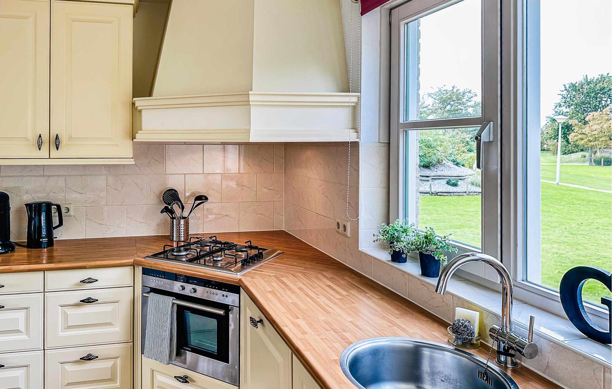 Dieses großzügige und lichtdurchflutete Reetdachhaus lädt Sie zu einem erholsamen Aufenthalt ein. Die geschmackvolle Einrichtung und der gemütliche Holzofen schaffen eine warme Atmosphäre, ideal zum Entspannen. Die gut ausgestattete Küche bietet alles, was Sie für gemeinsame Mahlzeiten benötigen, und die Badewanne sorgt für entspannte Stunden. Auf der Terrasse können Sie die frische Luft genießen, während Ihre Kinder im Garten spielen. Ein Ort, an dem Sie und Ihre Familie sich sofort wohlfühlen werden.