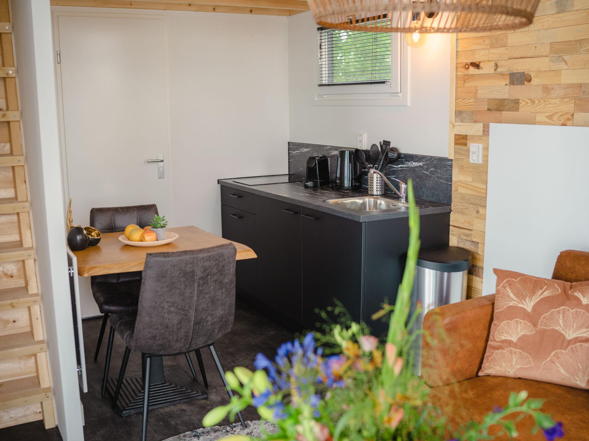 "Tiny River House", 2-room house 18 m2. Comfortable furnishings: living/dining room with TV (flat screen). Exit to the terrace. Small, open kitchen (2 hot plates, kettle, electric coffee machine, Capsules for coffee machine (Nespresso) extra). Shower/WC. Heating. Upper floor: (steep stair), 1 room with 1 double bed. Terrace. Terrace furniture. View of the lake. Facilities: Internet (WiFi, free). Parking (1 car). Please note: non-smokers only. Maximum 2 pets/ dogs allowed. Smoke alarm.
