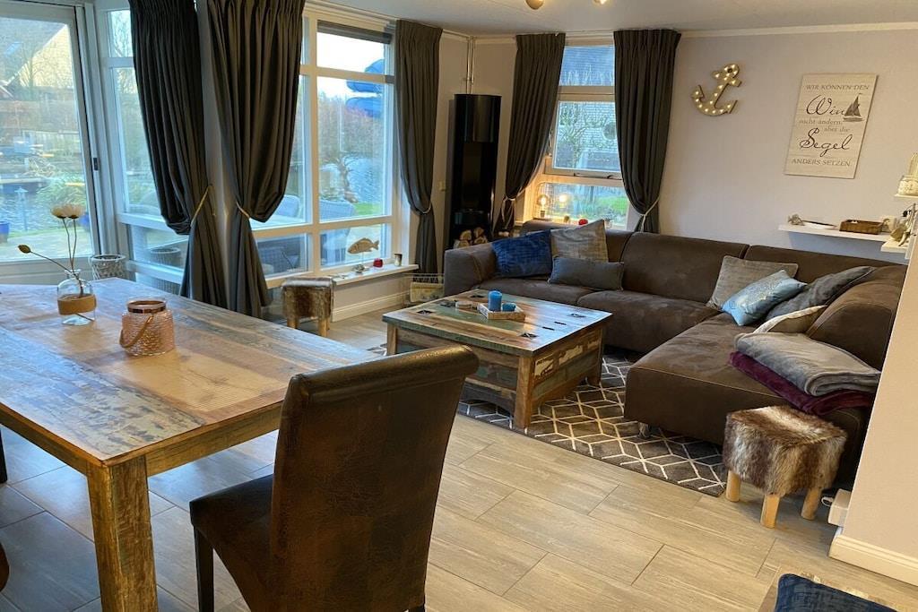 Wunderschönes und mit viel Liebe zum Detail eingerichtetes Ferienhaus in unmittelbarer Nähe zum Ijsselmeer für bis zu 6 Personen. Vor der Terrasse haben Sie einen eigenen Bootsanleger mit direktem Zugang zu den niederländischen Wasserstraßen. Ein kleines Schlauchboot mit Elektro-Außenbordmotor steht ebenfalls zur Nutzung bereit. Das Ferienhaus ist durch Hecken von den benachbarten Häusern getrennt . Das Haus befindet sich im EuroParcs Ijsselmeer (vormals Bungalowpark Zuiderzee) in Medemblik, ein traumhafter Ort mit zahlreichen Möglichkeiten zur Freizeitgestaltung. Das Ferienhaus hat eine Wohnfläche von ca. 90 m², im Erdgeschoss befinden sich Wohn- und Esszimmer mit einem gemütlichen Erker und großen Fenstern mit Blick auf Terrasse, Garten und Bootssteg. Angeschlossen an den Wohnbereich ist eine hochwertige Küche mit Spülmaschine, Gasherd, Backofen, Mikrowelle, Kühlschrank mit Eisfach, einem separaten Flaschenkühlschrank und weiterer umfangreicher Ausstattung. Ebenfalls im Erdgeschoss befindet sich ein Gäste-WC. Im Obergeschoss befinden sich 3 Schlafzimmer (jeweils mit TV) und ein modernes Bad mit Dusche und Whirlwanne. Ferner ist ein Abstellraum mit Waschmaschine und Trockner vorhanden.
