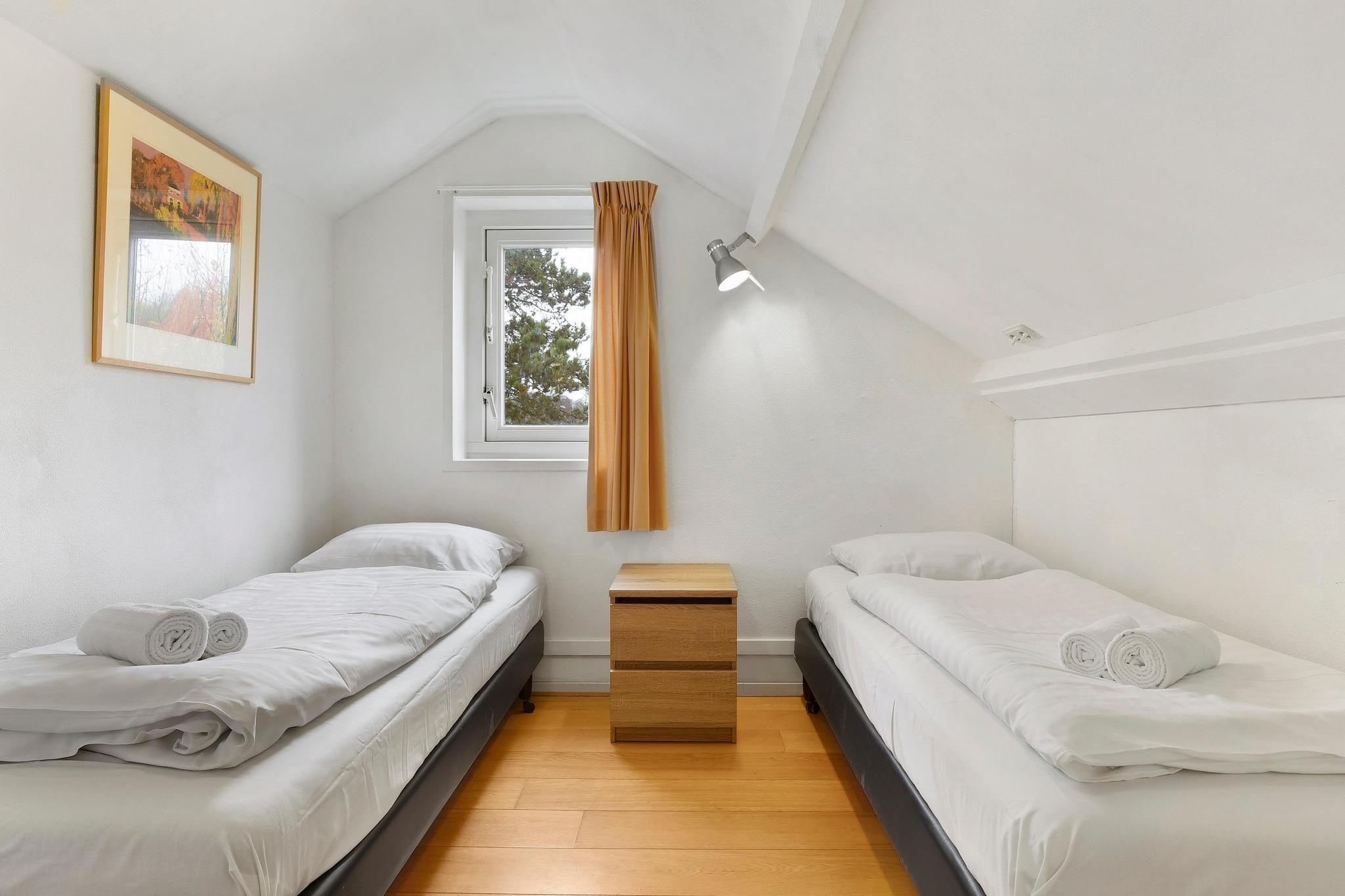 This semi-detached, comfortable holiday home is located in the spacious holiday park Waterpark De Bloemert, located on the Zuidlaardermeer. It lies just within the province of Drenthe, 3 km from the village of Zuidlaren and close to nature reserves such as Drentsche Aa National Park and Geopark De Hondsrug. The vibrant city centre of Groningen is 18 km away. The holiday home is located in the wooded part of the holiday park, is comfortably and fully furnished and covers two floors. On the ground floor is a living room with a TV and an open plan kitchen that includes a microwave and dishwasher. You will also find a double bedroom and a bathroom with bath and shower. There is a separate toilet in the hall. On the first floor you'll find two bedrooms, each with two single box-spring beds. A cot is provided as standard. Outside you have a garden with terrace and garden furniture and a bicycle shed. There is parking available in the central parking lots of the holiday park. At the Waterpark de Bloemert holiday park, you can reserve various types of holiday homes, bungalows and chalets for two to twelve people. Some types have a sauna and/or private indoor swimming pool.