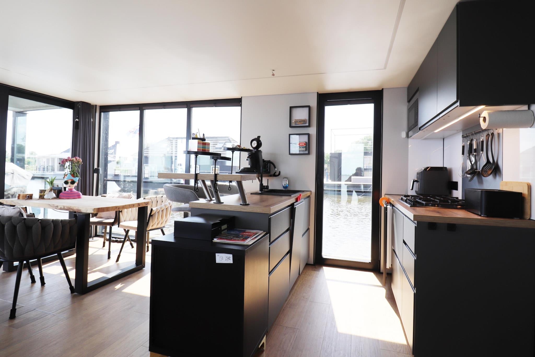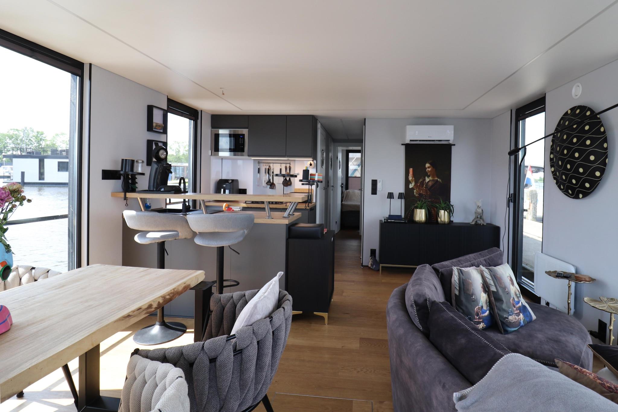 In a fantastic location overlooking Lake Sneekermeer, this luxurious houseboat is nestled in the heart of a water sports area. The boat accommodates four guests. There are two bedrooms, each with a double bed, and a spacious, modern bathroom. On the aft deck, you'll find a sauna area where you can relax and cool off directly in the open water. Atop the boat is a spacious sun deck with a lounge sofa and various seating areas. Here, you can enjoy the sunset and the passing boats. At the end of the jetty where this houseboat is moored, there's a restaurant where you can enjoy a delicious lunch or dinner. Not far from the holiday home, you'll find a water ski slope and inflatables in the water – fantastic for children. Excellent cycling paths are available in the surrounding area. Cycle to the charming Frisian villages around the lake and relax on a terrace by the water. You can also rent a boat for four people from the owner. The cost is EURO250 per week or EURO50 per day. Please contact the owner for this.