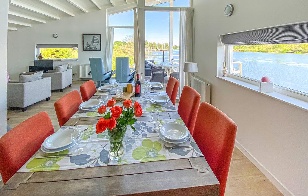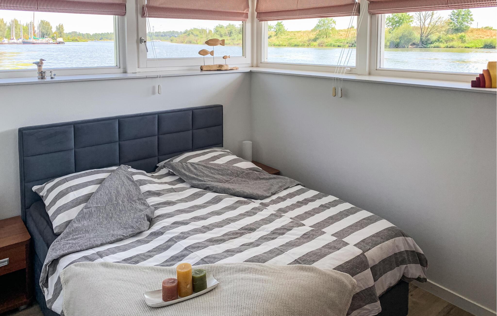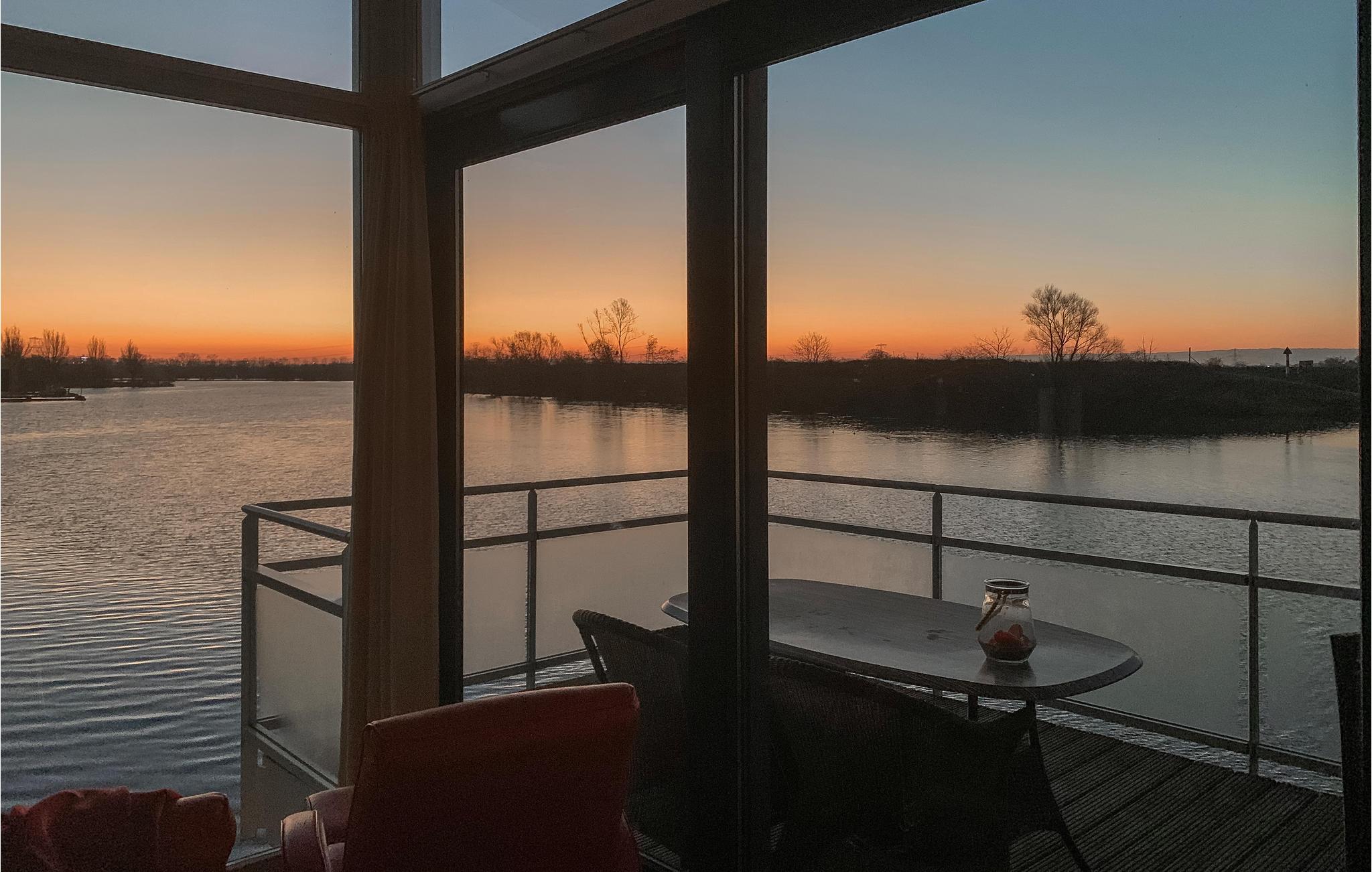 In diesem einzigartigen Ferienhaus, gebaut im Jahr 2013 wohnen Sie buchstäblich auf dem Wasser! Die Maasvilla 31 ist ein schwimmendes oder amphibisches Haus, das, je nach Wasserpegel der Maas, auf dem ruhigen Maassee schwimmt, oder, bei Niedrigwasser, auf Pfählen auf dem Grund steht. Es ist ca.120qm groß, von Wasser umgeben und nur durch einen schwimmenden Steg mit dem Land verbunden. Im Inneren finden Sie große Räume mit qualitativ hochwertigen Möbeln. Die großen Fenster im Wohnzimmer bieten einen herrlichen Blick auf das Wasser. Das Wohnzimmer ist geräumig mit offenem Dachfirst. Durch die Schiebetüren im Wohnzimmer erreichen Sie den möblierten Balkon, von wo Sie sich das Leben auf dem Wasser aus nächster Nähe beobachtgen können. Im Obergeschoss befinden sich Wohnzimmer, Küche und Toilette. Im Untergeschoss finden Sie die drei Schlafzimmer, ein Badezimmer und eine zweite Toilette.