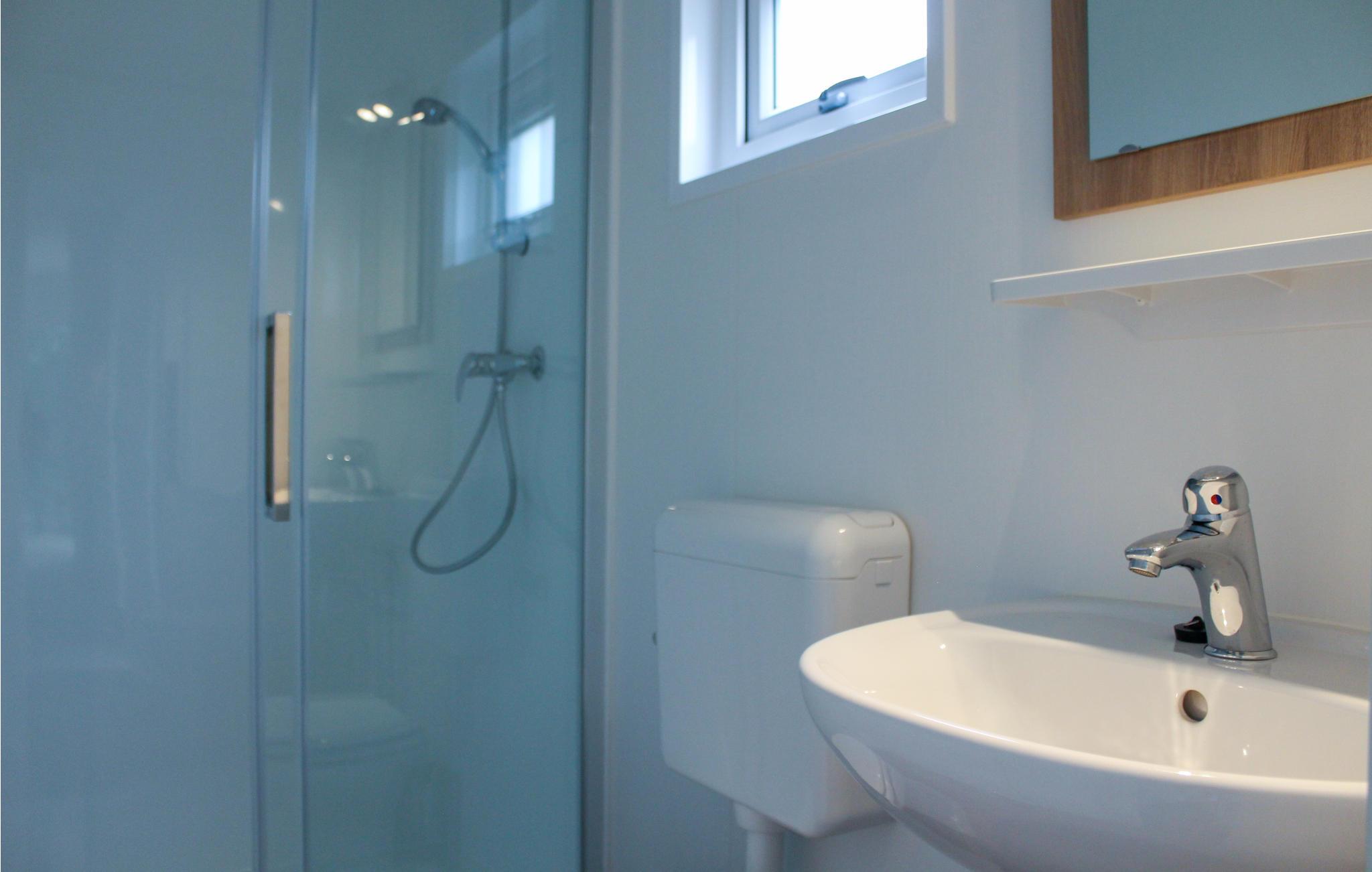 - WC mit warmem und kaltem Wasser, Dusche