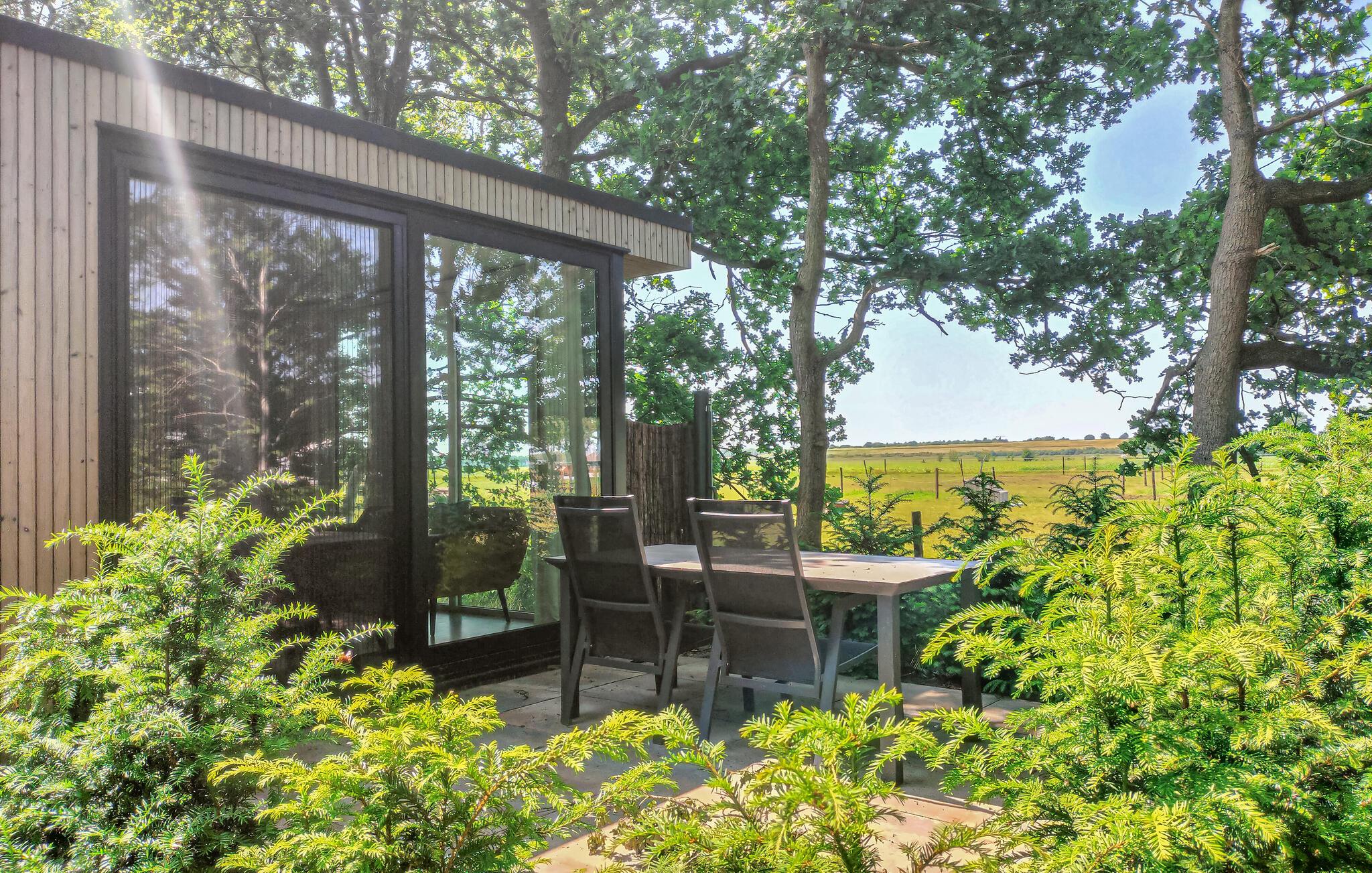 Treten Sie aus dem Wohnbereich ins Freie, wo die Terrasse zum Entspannen mit Blick auf die Natur einlädt. Genießen Sie Badespaß am See und kehren Sie in das Restaurant des Ferienparks ein.