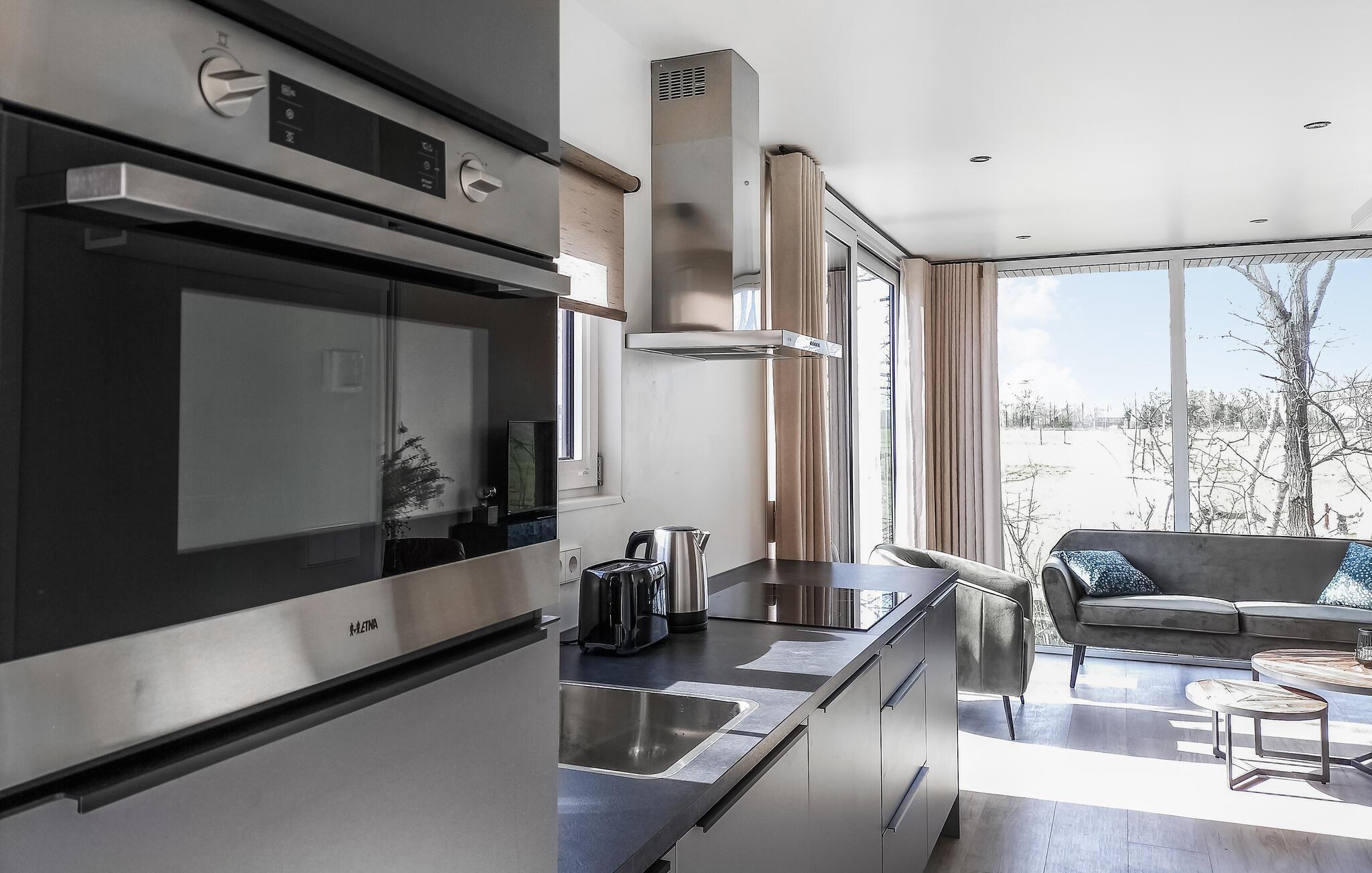 Treten Sie aus dem Wohnbereich ins Freie, wo die Terrasse zum Entspannen mit Blick auf die Natur einlädt. Genießen Sie Badespaß am See und kehren Sie in das Restaurant des Ferienparks ein.