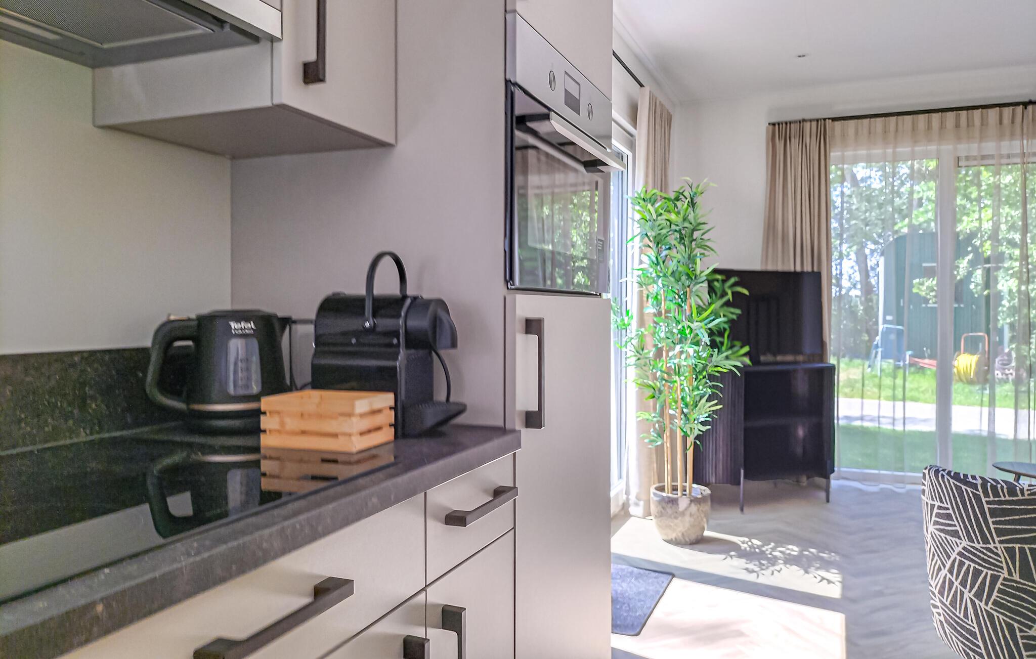 Treten Sie aus dem Wohnbereich ins Freie, wo die Terrasse zum Entspannen mit Blick auf die Natur einlädt. Genießen Sie Badespaß am See und kehren Sie in das Restaurant des Ferienparks ein.