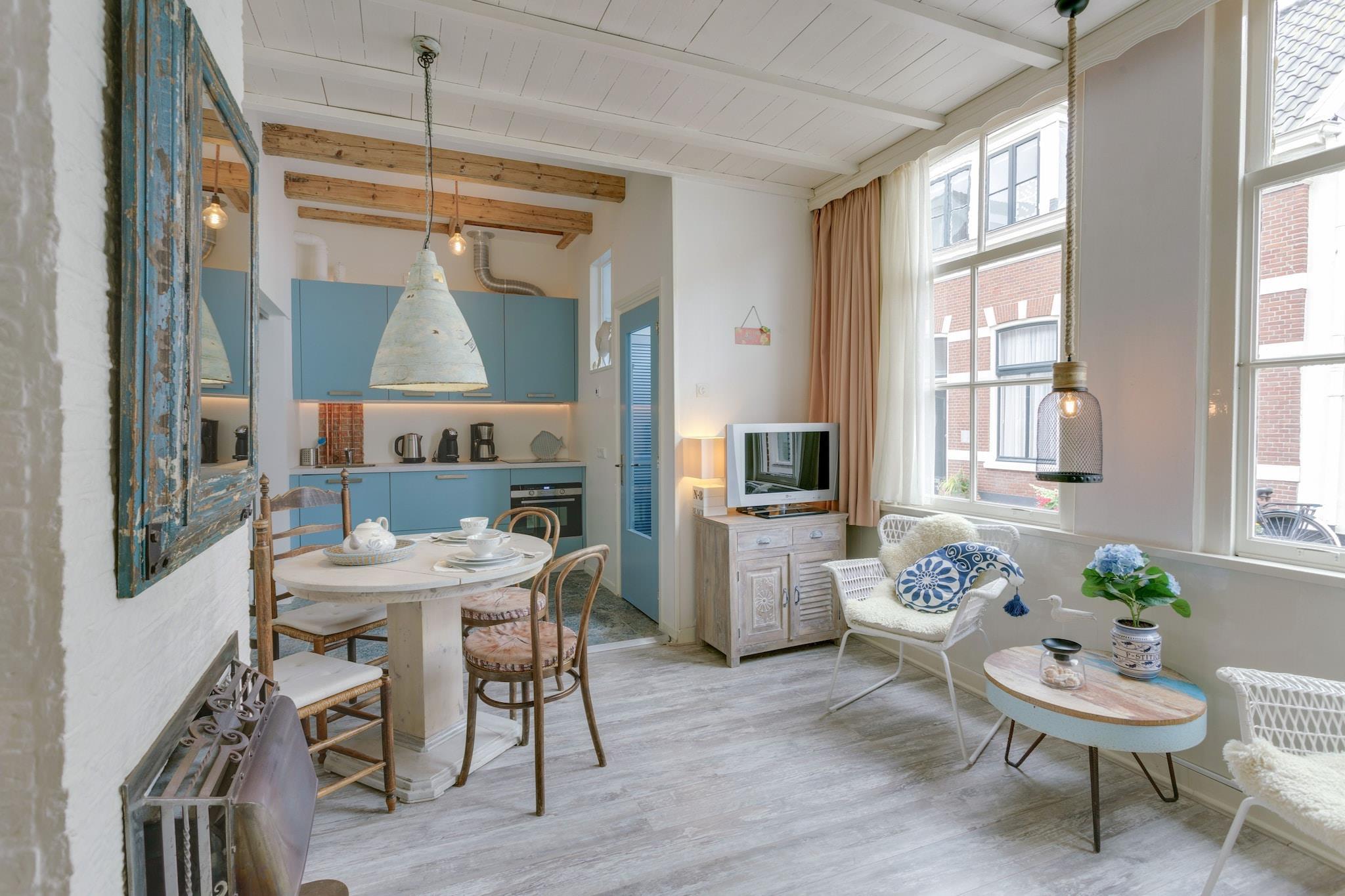 This holiday home has 1 bedroom and can accommodate 3 persons, which is ideal for a small family. Centrally located in Scheveningen, 200 m from the sea, the beach and the boulevard. The cozy Keizerstraat is around the corner and you can easily do your shopping on foot. If you want to eat out somewhere, you don't have to look far. The well-known Circus Theater, the mega cinema and the Holland Casino are also nearby. The center of The Hague is easily accessible by bicycle or public transport. In this picturesque fisherman's house you will experience the real, authentic Scheveningen. A cozy couch by the old stove, eat at the rustic table and sleep under the roof beams. On the 1st floor you will find a nice box bed with a single bed and a large bedroom. From this room you have access to the sunny balcony. The 1st floor can be reached via a steep staircase. You can use the garage for a fee.
