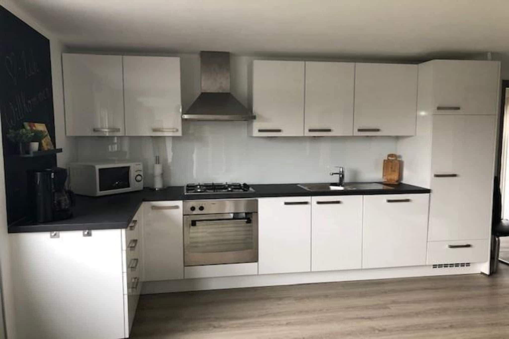 Ground floor: (Living room(TV(smart TV, dutch television channels, german television channels), dining table, seating area), open kitchen(electric kettle, coffee machine(filter), oven, microwave, dishwasher, fridge-freezer, dishes and cutlery(Bowls, chopsticks, plates, cups, etc.)), bedroom(double bed), bedroom(single bed), bedroom(bunk bed), bathroom(shower, washbasin, toilet)) tumble dryer, washing machine, heating(central), terrace, garden, parking