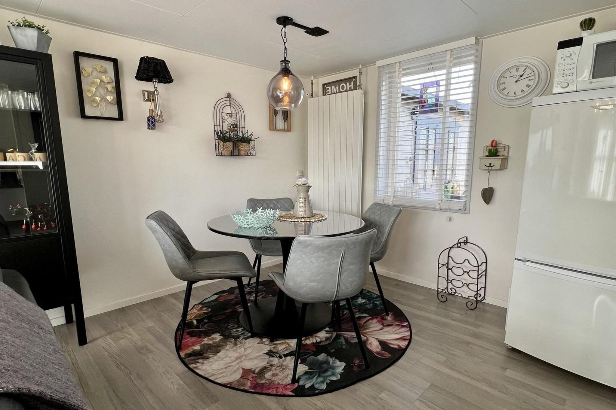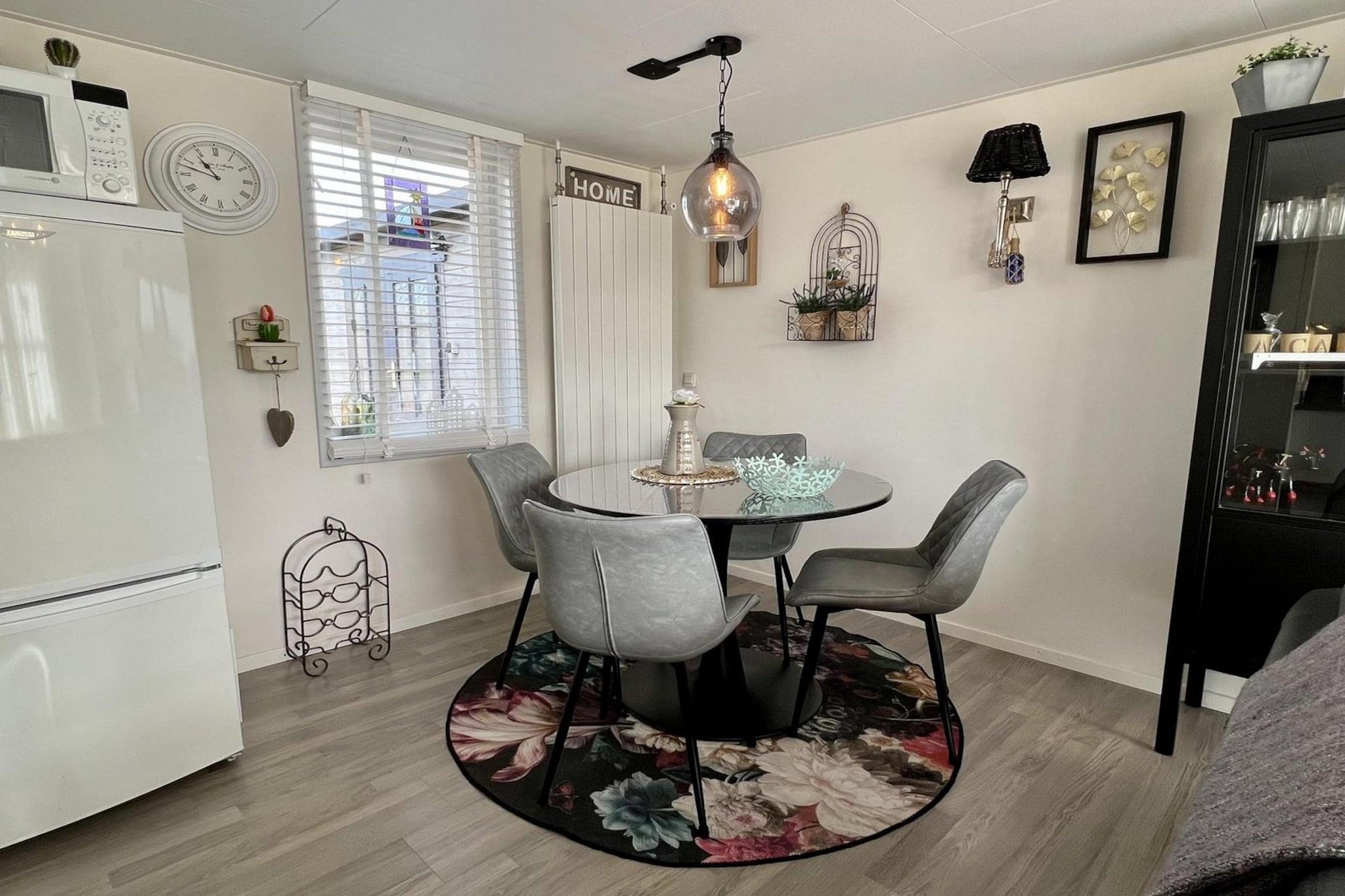 Escape to this charming and comfortable bungalow, a perfect hideaway nestled within the serene, tree-lined grounds of a holiday park. Designed for a relaxing break with family or friends, this home offers a wonderful blend of cozy interiors and a beautifully open outdoor space, all just a seven-minute bike ride from the lovely beach of Sint Maartenszee. Step inside this very tastefully decorated bungalow to find a bright and inviting living and dining area. A gas stove provides a cozy warmth, while a TV with a cable connection is ready for an evening of relaxation. The modern, open-plan kitchen is fully equipped with a gas stove, coffee maker, refrigerator with a freezer, and a dishwasher, making meal preparation effortless. The home is also equipped with central heating and free Wi-Fi for your comfort. The bungalow comfortably accommodates up to four guests with its two bedrooms. The master bedroom has a double bed and two wardrobes, while the second bedroom features two single beds and a small wardrobe. The bathroom has a shower, sink, and toilet. Outside, the cozy terrace is a great spot to relax. A garden table and four chairs are provided, and a retractable screen offers a comfortable outdoor space even on cooler days. The garden is not fenced, providing an unobstructed view of the large playing field and playground equipment, making it a perfect spot to watch the kids play. Note: The bed-linen is optional and available for EURO 13 p.p./Stay.