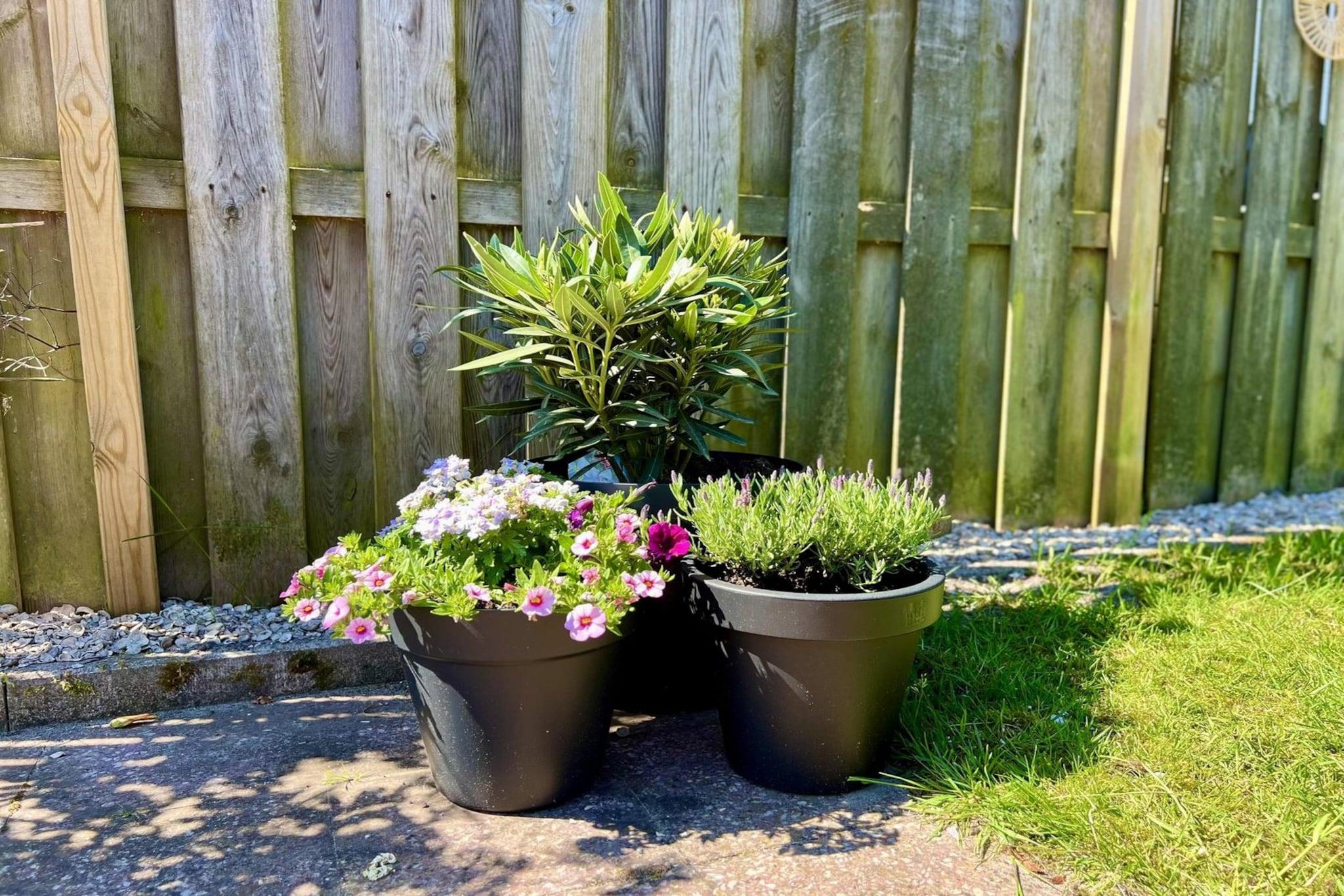 Ground floor: (Living room(TV(digital), seating area), open kitchen(stove(gas), electric kettle, toaster, hood, coffee machine(filter), oven, combination microwave, dishwasher, fridge-freezer), bedroom(double bed box(140 x 200 cm)), bedroom(single bed(80 x 200 cm), single bed(80 x 200 cm)), Children's bedroom(bunk bed(80 x 200 cm)), bathroom(shower(walk-in shower), washbasin), toilet(toilet)) cot, terrace, garden(fenced), bicycle storage, garden furniture, sun loungers, BBQ, parking, high chair, Garden shed