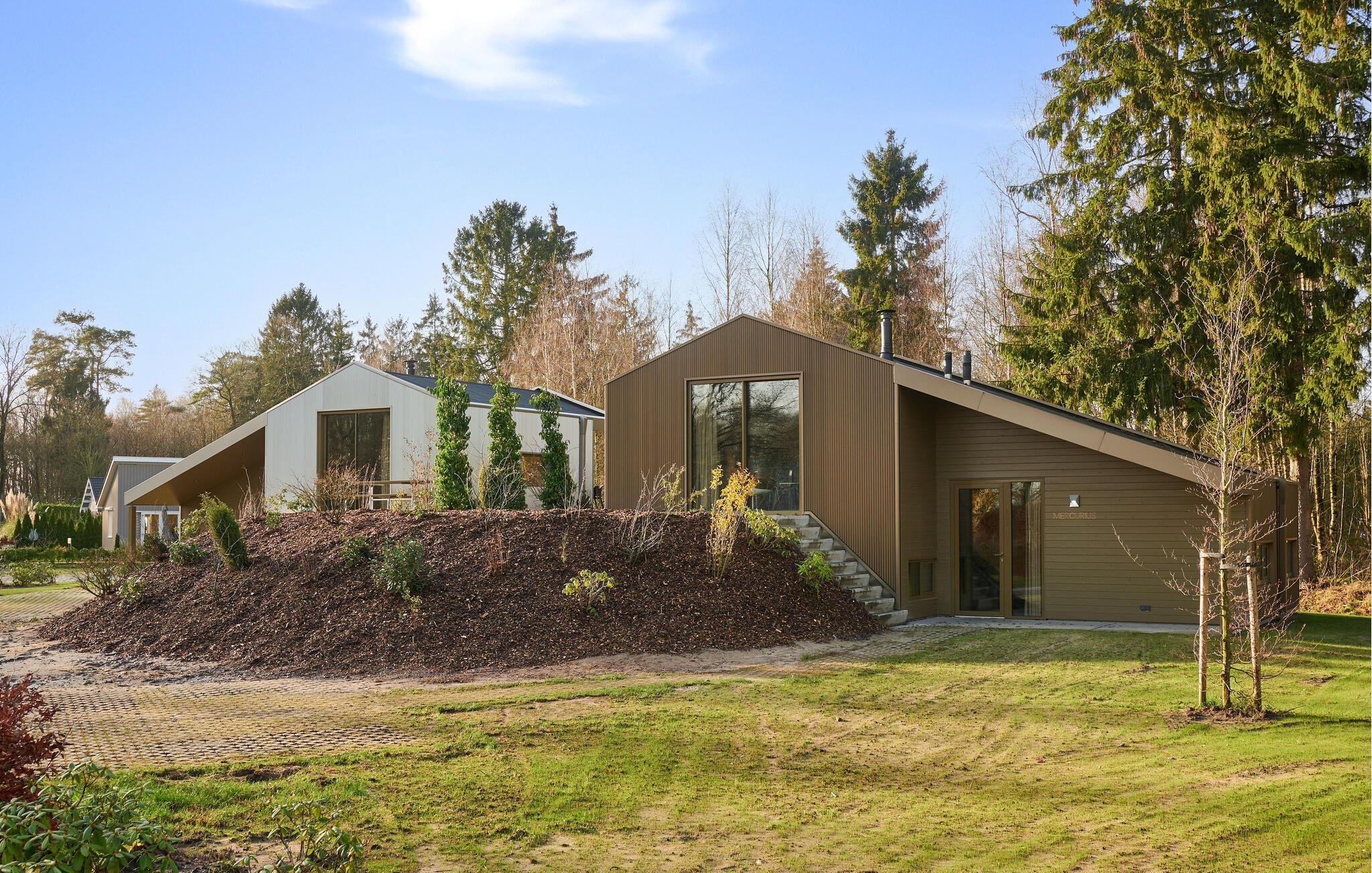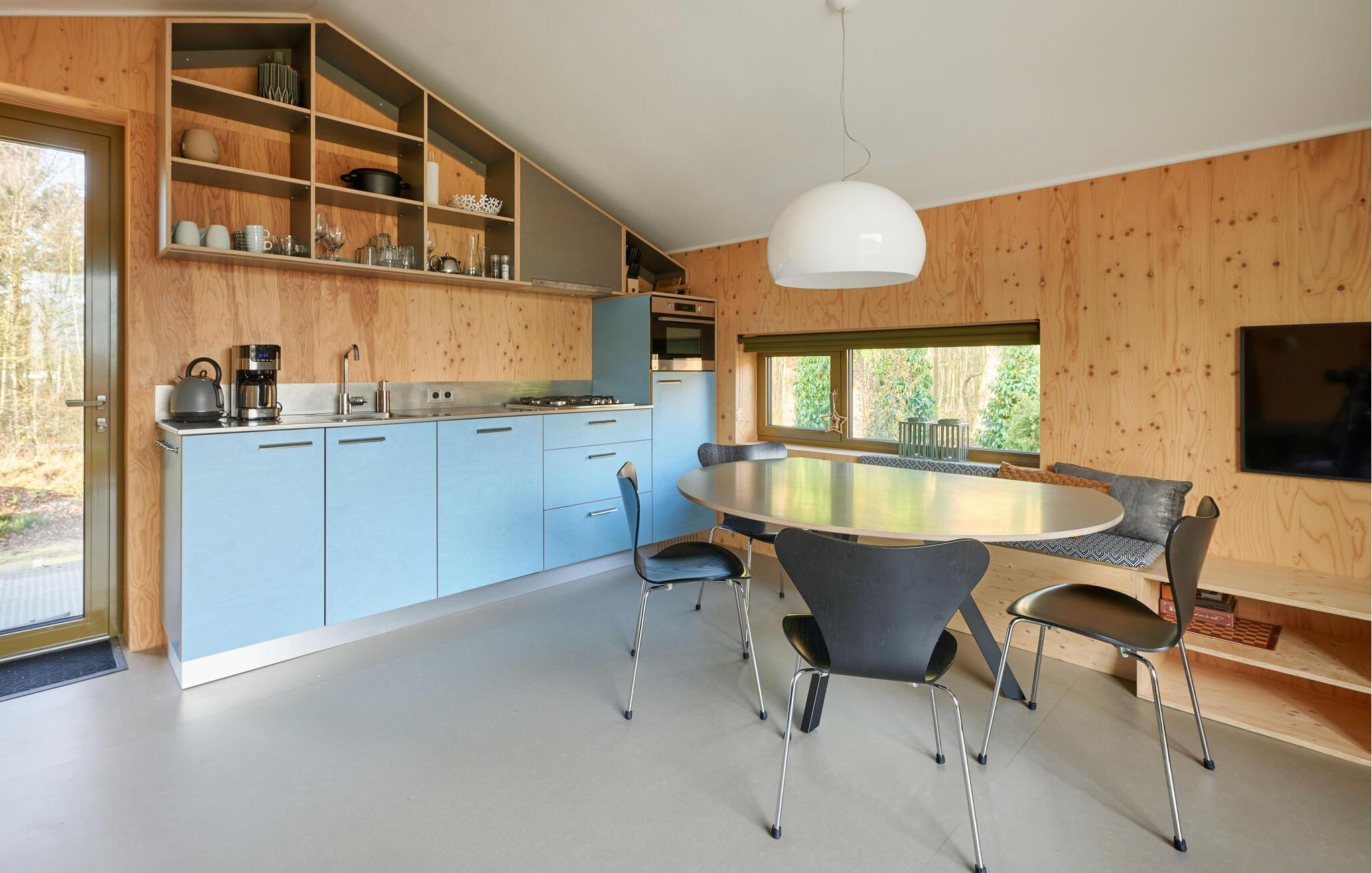 Willkommen in diesem einladenden und modernen Haus auf drei Etagen. Das architektonisch verspielte Design bietet ein einzigartiges Raumerlebnis und wurde sorgfältig in einem modernen und minimalistischen Stil dekoriert. Hier können Sie der Hektik des Alltags entfliehen und in wunderschöner Natur vollkommen entspannen. Die farbenfrohe, voll ausgestattete Küche lädt zum Zubereiten köstlicher Mahlzeiten ein. Treffen Sie sich am besonderen Esstisch, entspannen Sie auf dem Sofa bei einem guten Film oder genießen Sie abends die Wärme des Holzofens. Vom Wohnzimmer aus haben Sie einen schönen Blick auf den Wald und das Naturschutzgebiet Terhorsterzand mit seinen Heiden, Wäldern und Mooren.