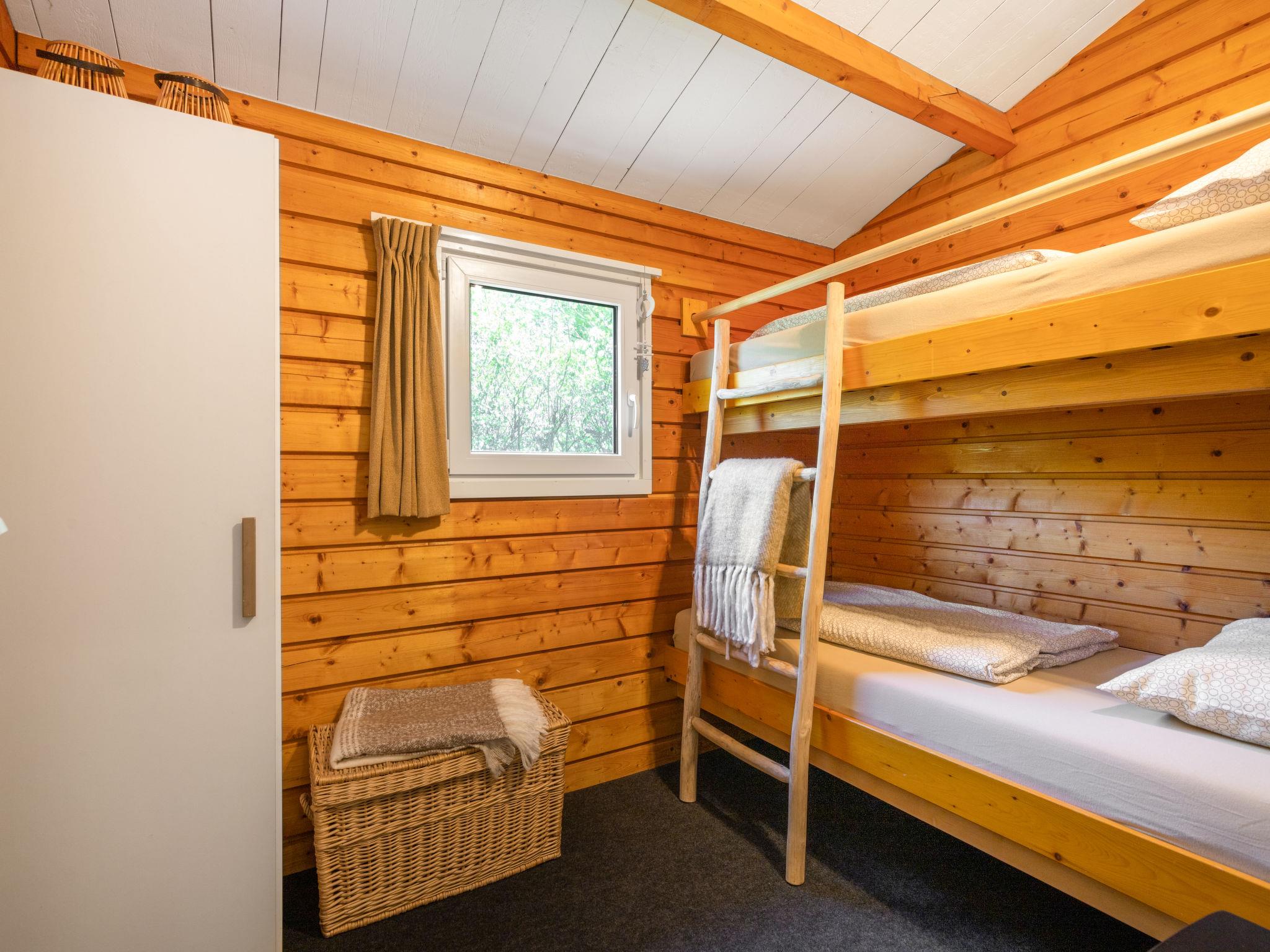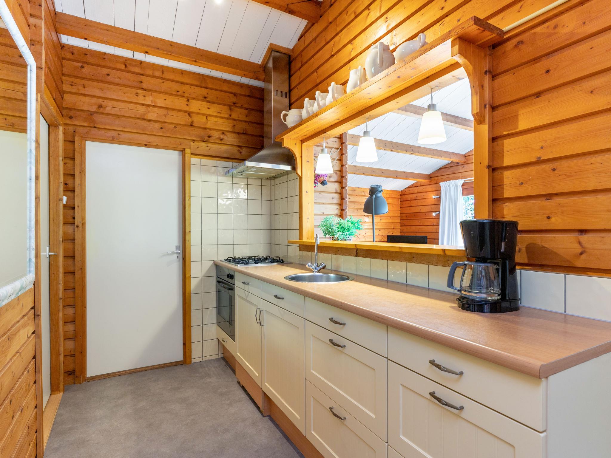 "Rusthoeve 14", 3-room chalet 57 m2. Simple and practical furnishings: open living/dining room with TV. Exit to the garden. 1 room with 1 french bed (2 x 80 cm, length 200 cm). 1 children's room with 1 x 2 bunk beds. Small, open kitchen (4 hot plates, oven, electric coffee machine). Shower/WC. Gas heating. Terrace, garden. Terrace furniture. Facilities: Internet (WiFi, free). Please note: non-smokers only. Smoke alarm. During high season it is not allowed to bring pets.