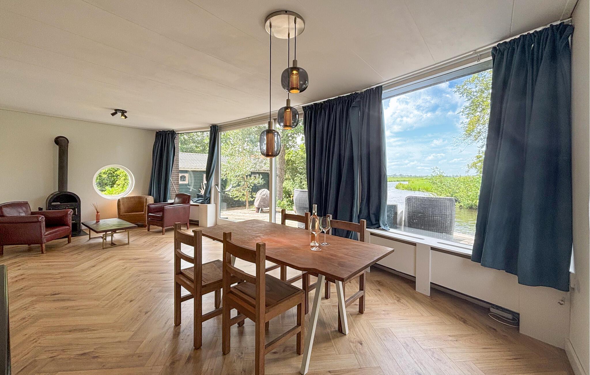 Machen Sie es sich im geräumigen, hellen Wohnzimmer auf den gemütlichen Sesseln vor dem Kaminofen bequem. Lassen Sie den Blick durch die großen Fensterfronten schweifen und genießen Sie die Aussicht auf das Wasser direkt vor der Tür. Nutzen Sie den Esstisch im offenen Raumkonzept für gemeinsame Mahlzeiten und verbringen Sie gesellige Abende bei Kerzenschein. Bereiten Sie Ihre Speisen in der modernen Küche zu und erleben Sie die harmonische Kombination aus modernem Design und behaglicher Gemütlichkeit.