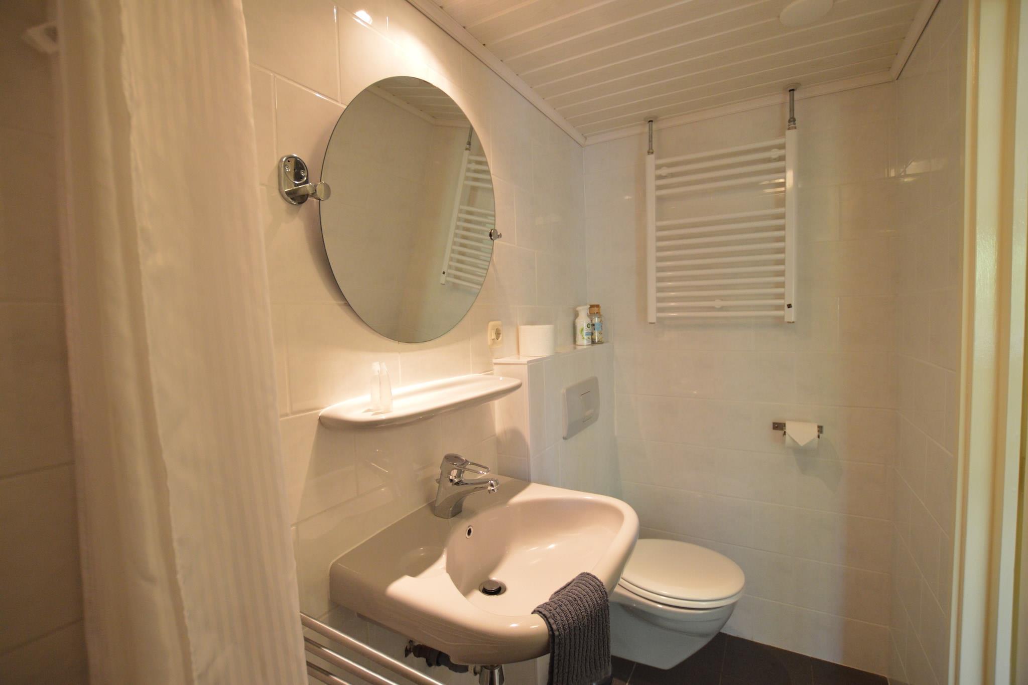 Ground floor: (open kitchen(cooker(4 ring stoves), coffee machine(pads), coffee machine(filter), combination microwave, dishwasher, fridge-freezer), Living/diningroom(TV, dining table, seating area, DVD player, stereo unit), bedroom(double bed(160 x 200 cm), TV), bathroom(shower, washbasin, toilet), recreation room(infrared sauna)) streamingservice, patio, terrace(private, roofed), garden(private), parking