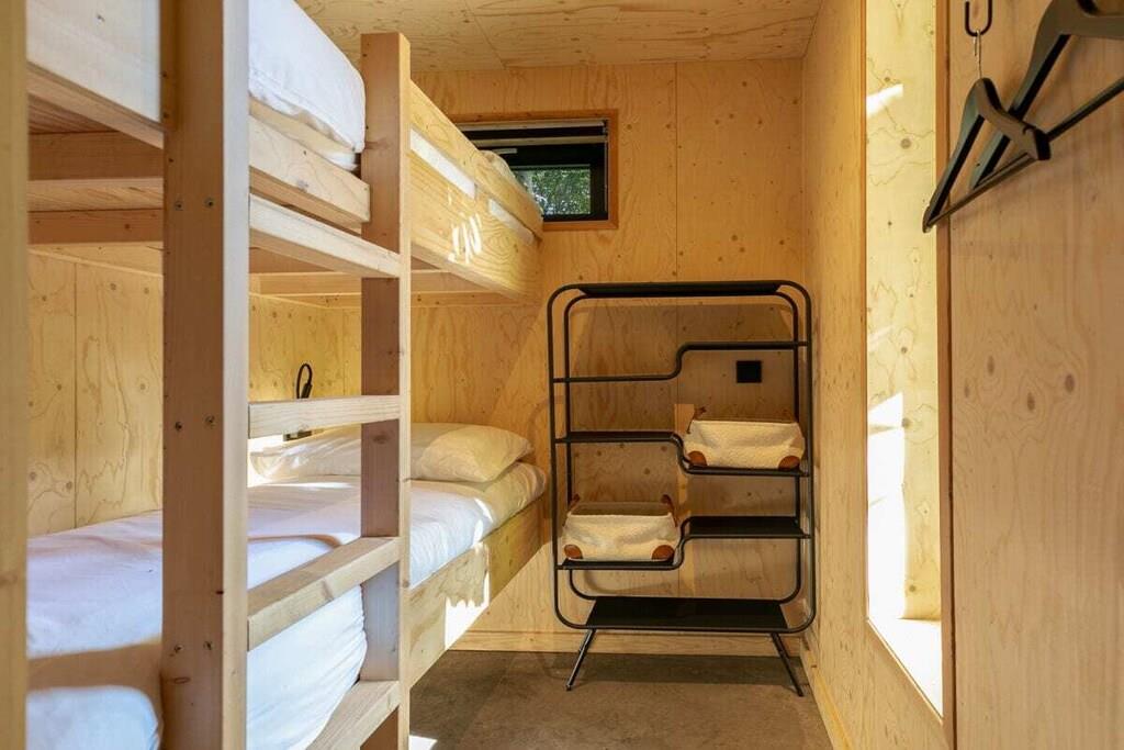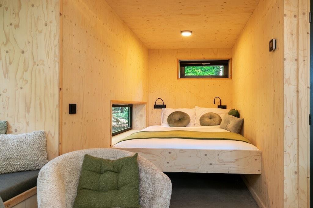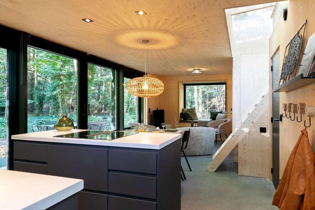 Sleep in the luxurious double bed in the alcove overlooking the forest. Or enjoy romantic nights for two on the sleeping loft under the stars and treetops. There is also a bedroom with a bunk bed. An oasis of peace and luxury, beautifully situated in the Teteringen Forest, between Breda and Oosterhout. Right next to the De Haenen Golf Park, mountain bike trails, and hiking paths, this house with a rain shower and whirlpool offers the perfect base for golf enthusiasts, (adventurous) cyclists, hikers, and visitors to the vibrant city of Breda.