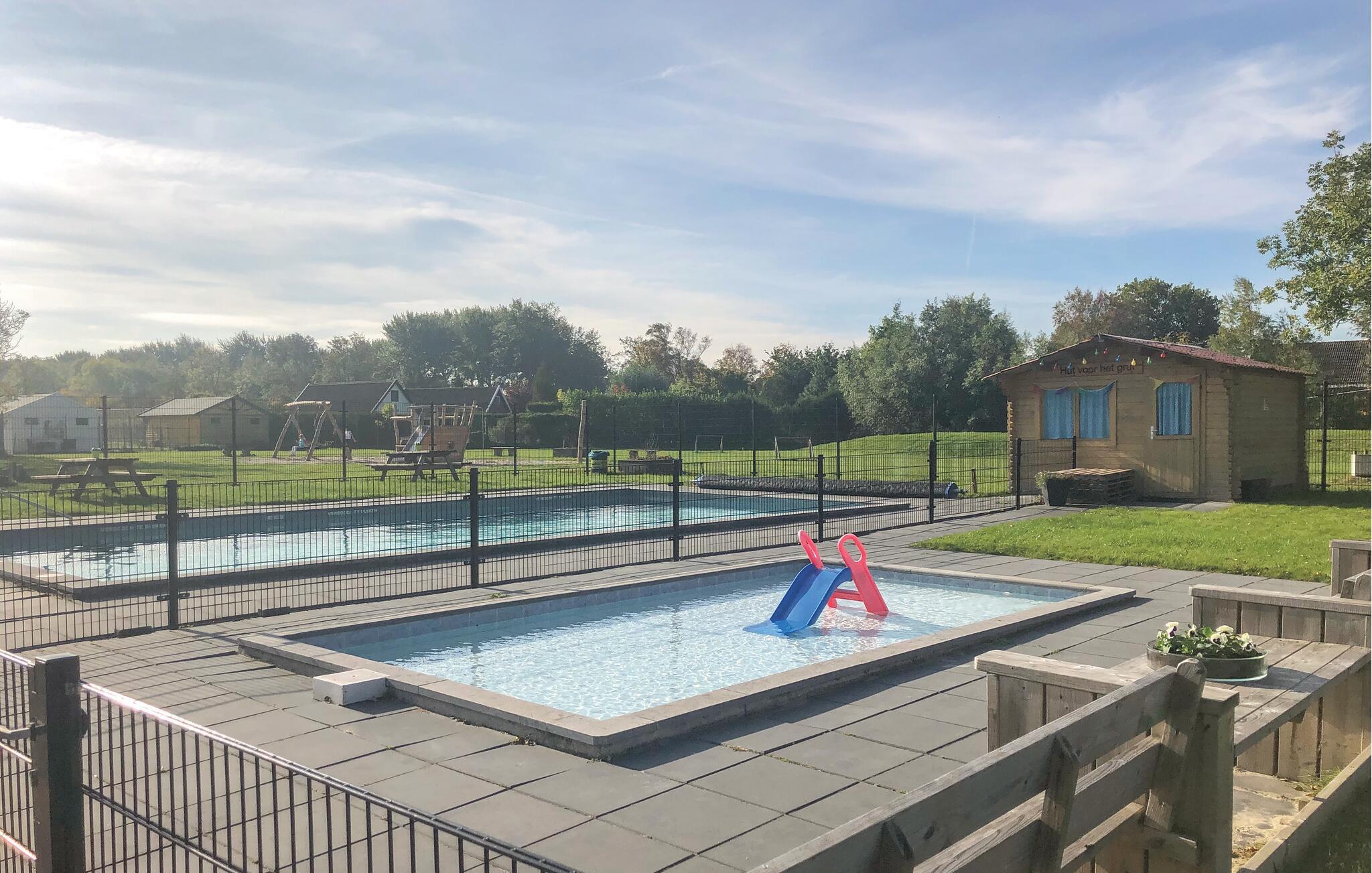 Verbringen Sie einen herrlichen Familienurlaub in diesem Ferienhaus mit Poolzugang.