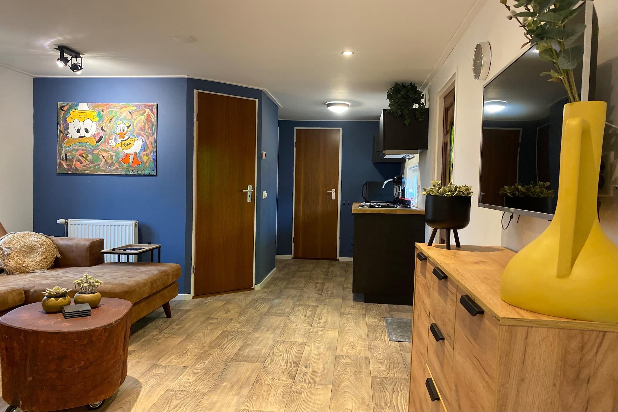 This charming chalet in Tzummarum offers a cosy and inviting atmosphere, perfect for a relaxing getaway. Decorated with comfortable furniture and colourful decorations, it features 2 bedrooms, one of which has a bunk bed, ideal for families. The bathroom is equipped with a shower, toilet and sink, and offers all the necessities for a comfortable stay. In addition, WiFi is available to keep you connected during your stay. The surrounding area offers a variety of attractions for all types of travellers. The chalet is situated in the beautiful Frisian countryside, perfect for nature lovers who enjoy walking, cycling or simply exploring the peaceful surroundings. Nearby you can also discover the charming town of Franeker, known for its historic buildings, the Planetarium and cosy cafés. The North Sea coast is a short drive away and offers beautiful beaches and coastal activities for a day out. Outside, the garden has been carefully landscaped, providing a peaceful setting to relax. On sunny days, you can relax on the terrace and enjoy the tranquillity of the surroundings while preparing a meal on the barbecue. Whether you are looking for an outdoor adventure or a peaceful retreat, this chalet in Tzummarum is the perfect base for your next holiday. The park has a swimming pool and tennis court that guests can use for free.