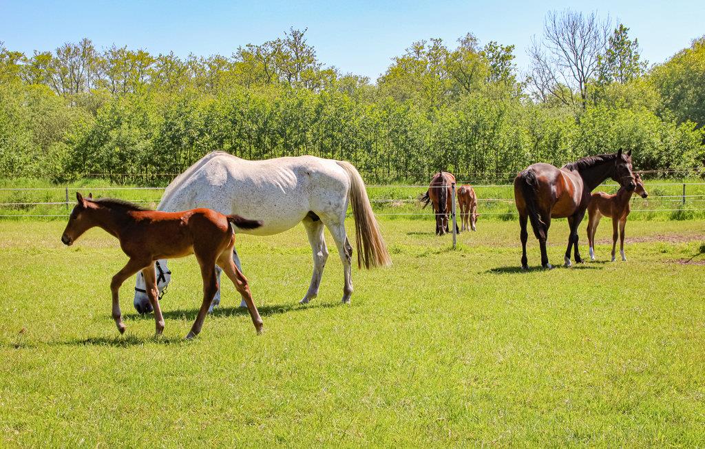 Verbringen Sie entspannte Momente auf der großen Terrasse bei einer Tasse Kaffee oder beim Lesen eines guten Buches und genießen Sie die schöne Landschaft und die Pferde.