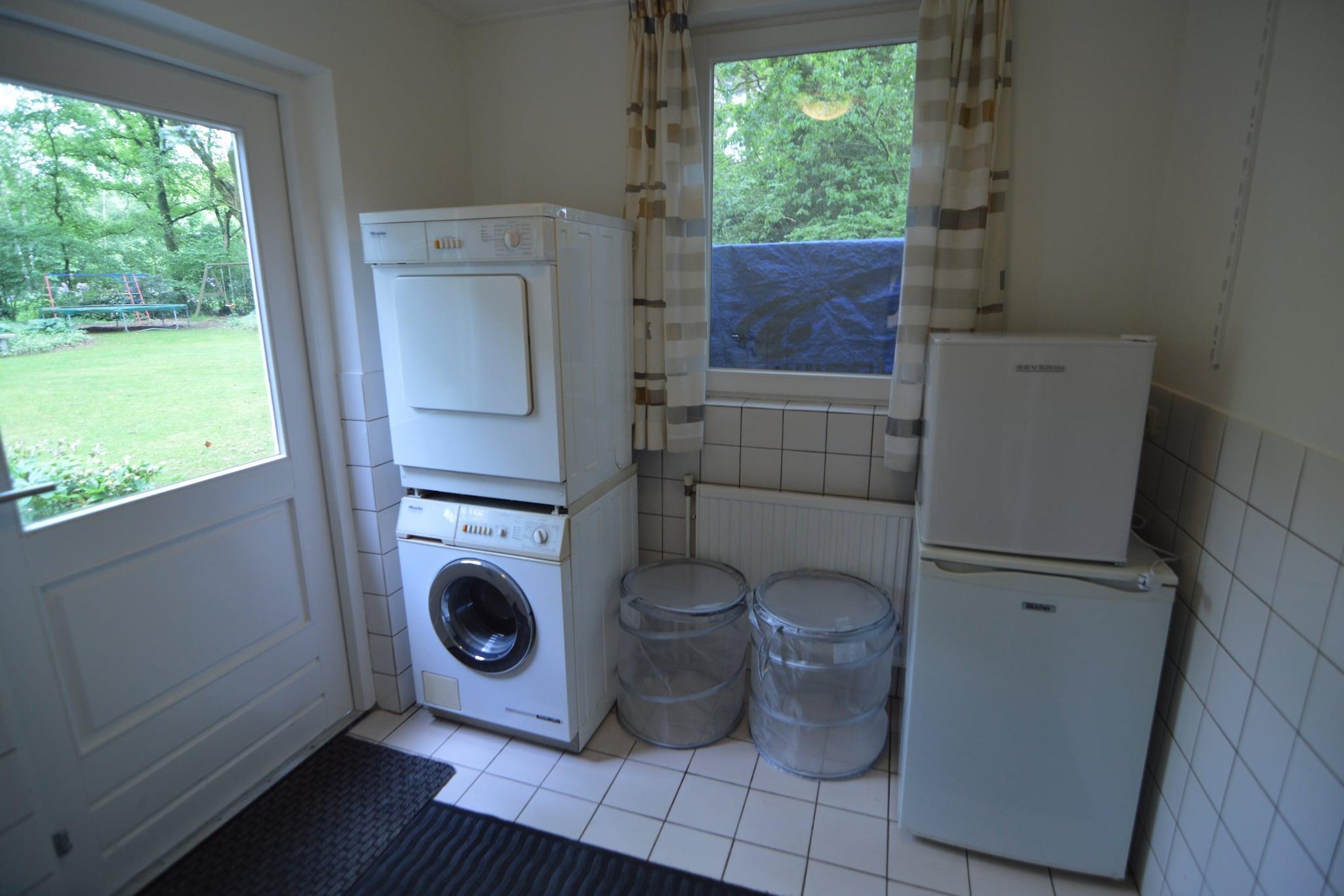 Ground floor: (hallway, Living room(TV(cable), stove(wood), DVD player), Kitchen(radio, coffee machine, combination microwave, dishwasher), bedroom(double bed), bedroom(4x single bed), bathroom(shower, washbasin), toilet(washbasin, toilet), pantry(freezer, fridge-freezer, tumble dryer, washing machine)) storage, terrace, garden(fenced), garden furniture, BBQ, parking, trampoline, play equipment, high chair(on request)