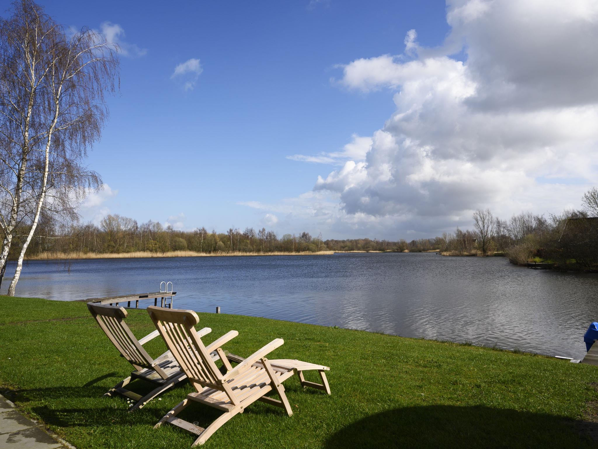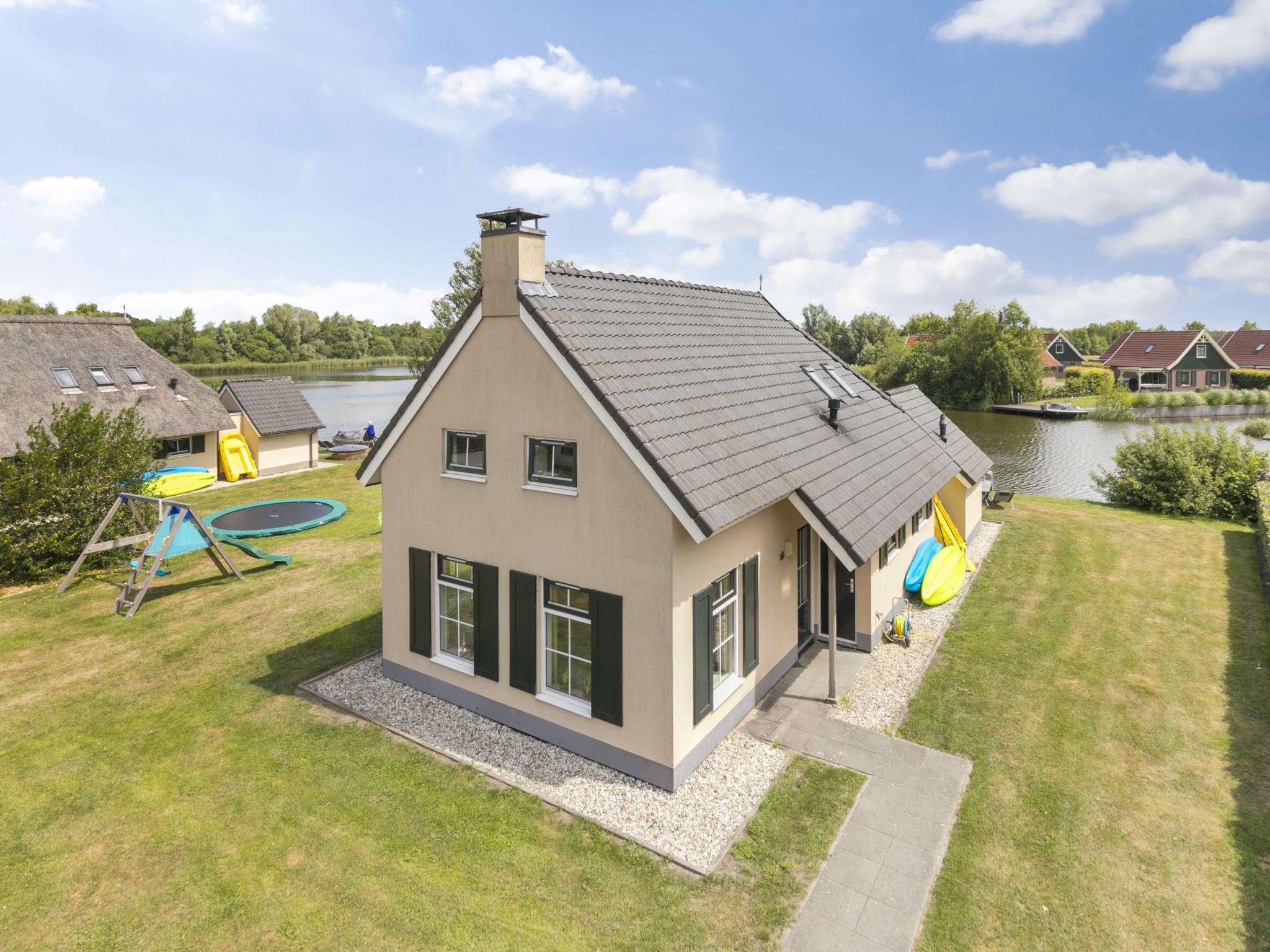 "Lieskehuis Wellness de Luxe 10+2", 5-room house 118 m2. Object suitable for 10 adults + 2 children. Comfortable furnishings: living/dining room with dining table and flat screen. 1 room with 2 beds. Open kitchen (4 hot plates, oven, dishwasher, microwave, electric coffee machine) with bar. Exit to the terrace. Bath/shower, sep. WC. Heating. Upper floor: with sloping ceilings, 2 rooms, each room with 2 beds. 1 room with 4 beds. Alcove. Shower/WC, Sauna. Terrace, large garden. Terrace furniture, barbecue, deck chairs (2), box-room. View of the lake. Facilities: washing machine, dryer, children's high chair, baby cot. Internet (WiFi, free). Parking (3 cars) at the house. E-charging station. Please note: maximum 1 pet/ dog allowed. Smoke alarm. The sleeping alcove is a Dutch Cupboard bed for 2 children. A 2-person kayak, a 2-person canoe, 2 SUP boards are available and there is a 6-person pedal boat at the jetty. The playground is shared with the house next to you. A 6-person outdoor spa and a cold water plunge pool can be found in the garden. There is a jetty with a swimming ladder at the waterfront. When you bring a pet an additional cleaning fee of € 15,75 applies on top of the pet's costs, to be paid on spot. Bookings accepted for holiday purposes only.