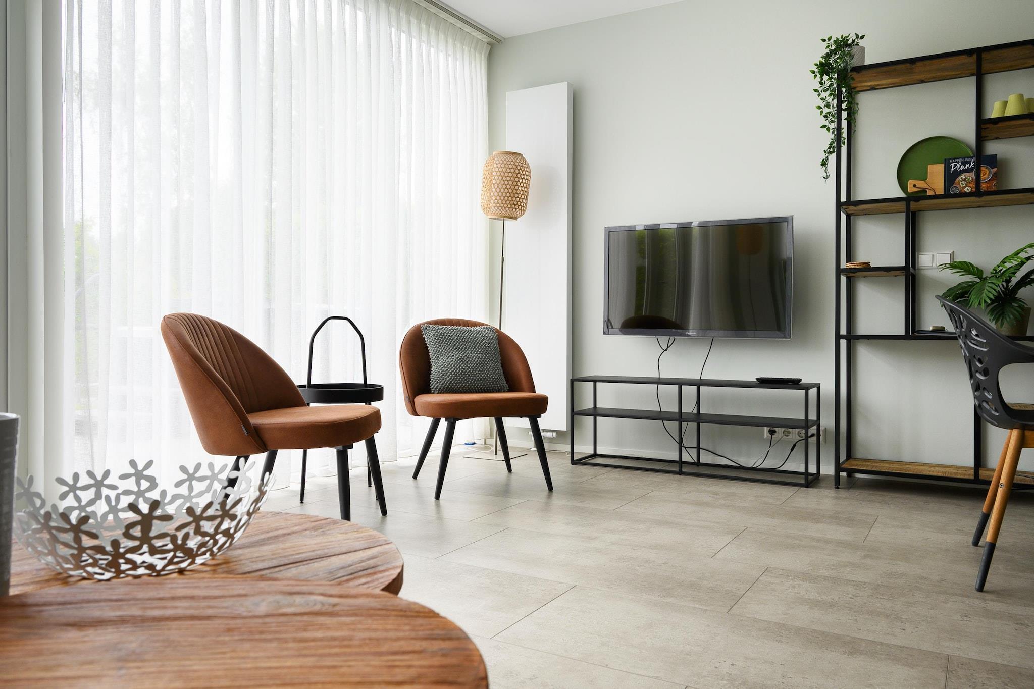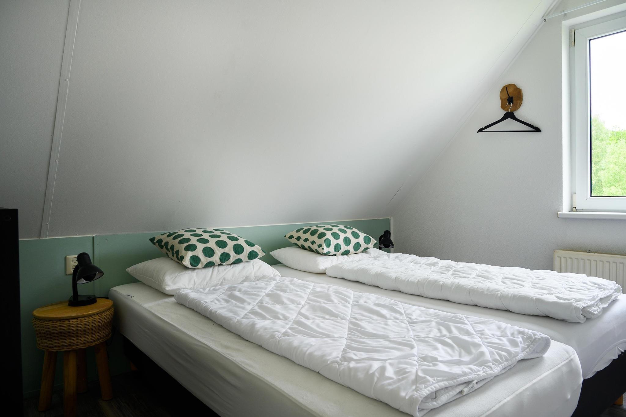 Ground floor: (open kitchen(hob, electric kettle, toaster, coffee machine, coffee machine(filter), espresso machine, combination microwave, dishwasher, fridge(+ freezer)), Living/diningroom(TV(smart TV), dining table, seating area), bedroom(single bed(boxspring), single bed(boxspring)), bathroom(bath tub, shower(walk-in shower), washbasin), toilet(toilet), storage(washing machine)) On the 1st floor: (bedroom(single bed(boxspring), single bed(boxspring)), bedroom(single bed(boxspring), single bed(boxspring)), bedroom(single bed(boxspring), single bed(boxspring)), bathroom(shower, washbasin, toilet)) jetty, sauna, BBQ, parking