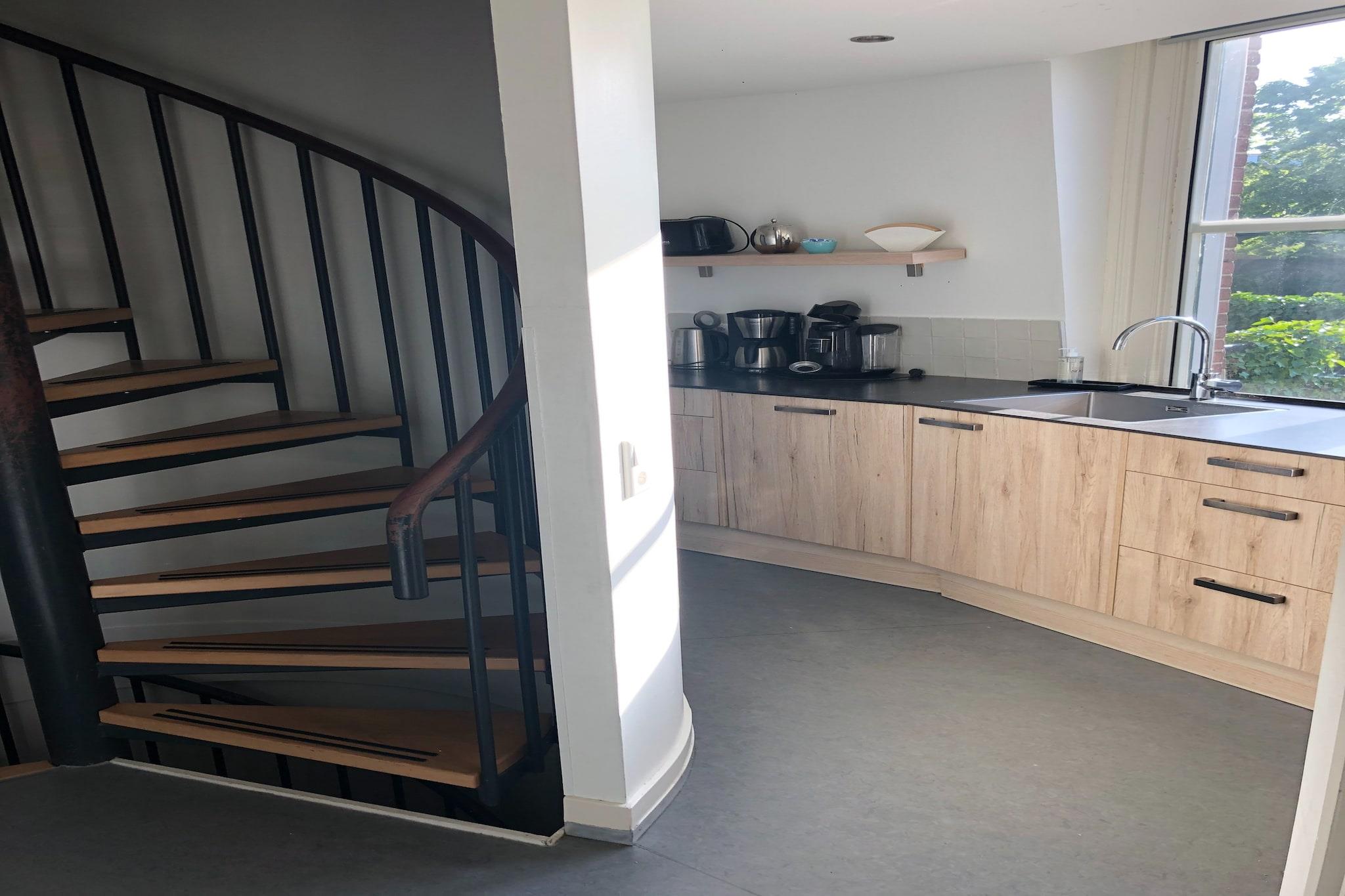 Sleeping in a water tower is an unforgettable experience! This renovated water tower from 1896 is full of surprises for young and old. There are 4 bedrooms, 2 bathrooms, 3 toilets, a playroom and a large garden. Experience the beautiful view in the original water barrel with windows on all sides and in the observation tower at a height of 36 meters. Look out over the city as far as you can. And behold, the sea is already beckoning, there behind the boulevard. Great! On the ground floor is the spacious kitchen where you can sit with up to 8 people. There is a dishwasher, 5-burner gas stove including a wok burner and a double convection oven. A transparent glass gas fireplace provides an attractive partition and also provides a view through to the living room. The high ceilings in the living room accentuate the round shape of the tower even more. Lovely sofas, armchairs and private access to the landing to the garden complete the luxurious living room. On the second and third floors are a total of 4 large double rooms. There are 2 luxurious bathrooms with a walk-in shower, bath, bathroom furniture and toilet. In one of the bathrooms you will even find a comfortable sauna. From the fourth floor you can reach the space under the water barrel via a beautiful spiral staircase. From there you enter the immense water barrel. Only then will you really experience how much water has ever been stored in the vessel: 300,000 litres. There are windows on all sides, with unobstructed views of the surroundings, the city and even a piece of the sea. Climb even further up for the meeting room for 12 people and, finally, a unique watchtower at 36 meters high. In the almost industrial basement is a fully equipped play area with, among other things, Photo play, Pacman and billiards. You can also use the washing machine and dryer that are located here. Around the water tower is a spacious garden (approx. 800 m2 plot) including a large terrace with plenty of sun and privacy. There is a trampoline for the children. You will also find a large lounge sofa.