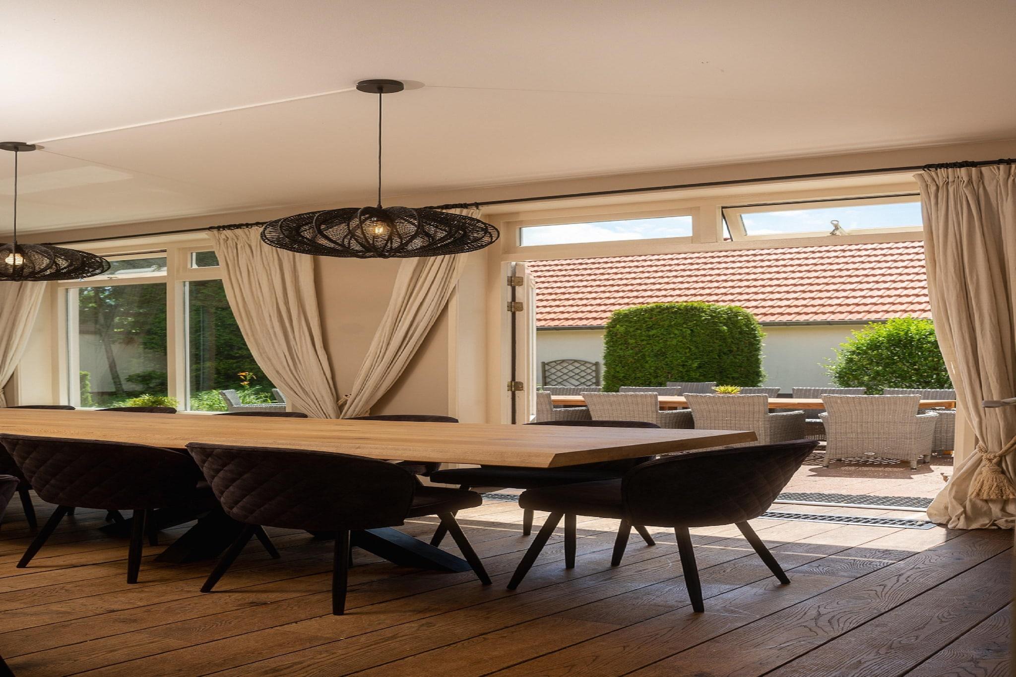 Charming Retreat with Room for All Welcome to your private group escape in Voorthuizen! This inviting 7-bedroom villa is the perfect blend of rustic warmth and modern convenience, thoughtfully spread across three spacious floors. The cozy living room features a fireplace for relaxing evenings, and the large dining area is ideal for shared meals and celebrations. Whether you're hosting a family reunion or a friends' getaway, you'll find the space and comfort you need—plus a fully equipped kitchen to make everyone feel right at home. Sprawling Garden & Private Game Room Step outside and discover what truly sets this villa apart—an expansive private garden where peace and play go hand in hand. The furnished terrace is perfect for al fresco dining or morning coffee, while the lush lawn gives everyone space to unwind. The cherry on top? Your very own annex game room, complete with table tennis, foosball, darts, and board games. There's even access to a shared swimming pool and a sauna (available for a fee) to complete your wellness-filled holiday. Please note: pets are not allowed, keeping the space peaceful and allergy-friendly. Idyllic Setting with Local Flavor Nestled in the heart of the Veluwe region, the villa is surrounded by forest trails, bike paths, and quaint Dutch countryside. When hunger calls, stroll or drive to nearby De Goudreinet or Restaurant De Bunckman for traditional favorites and local specialties.