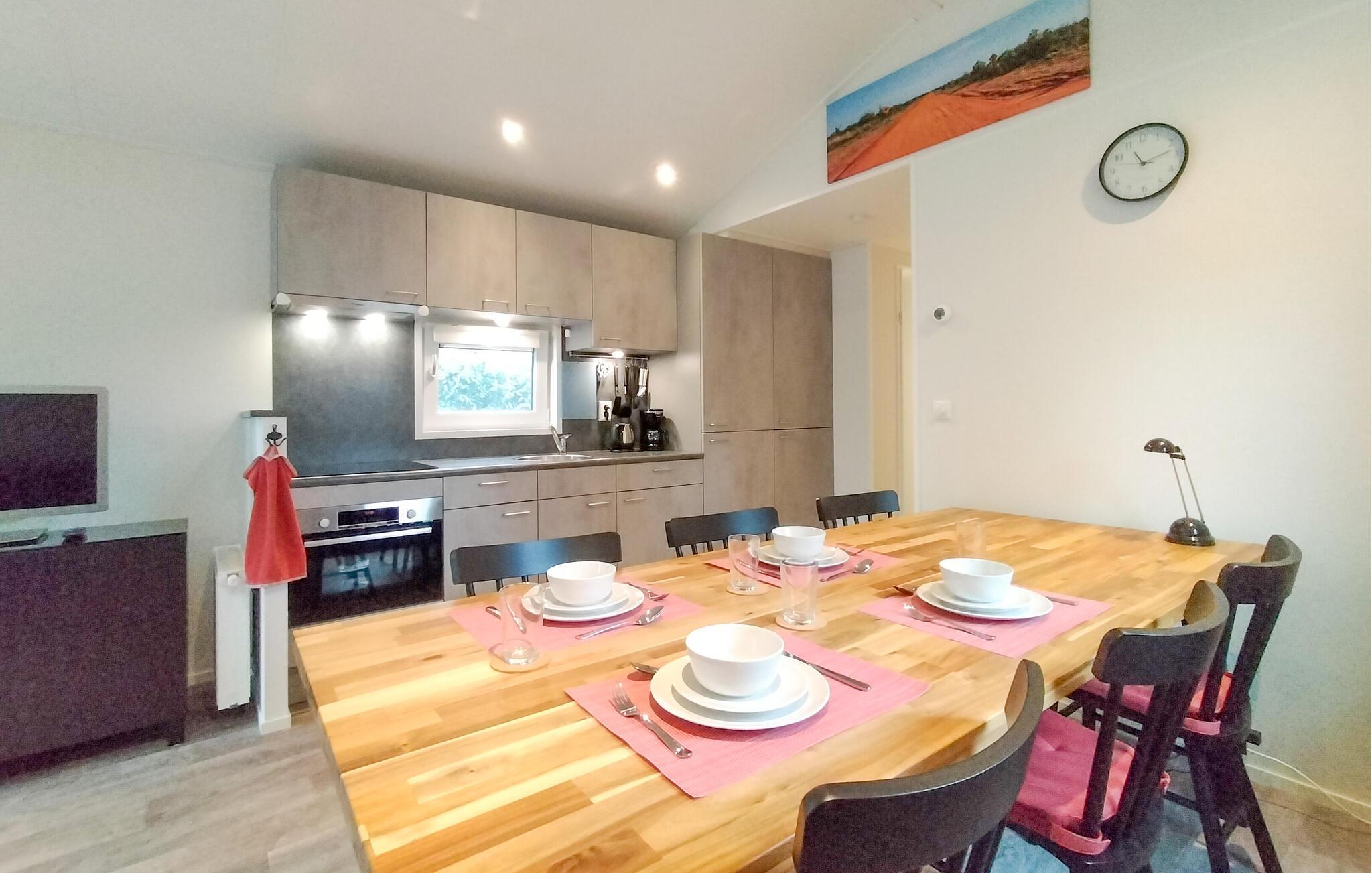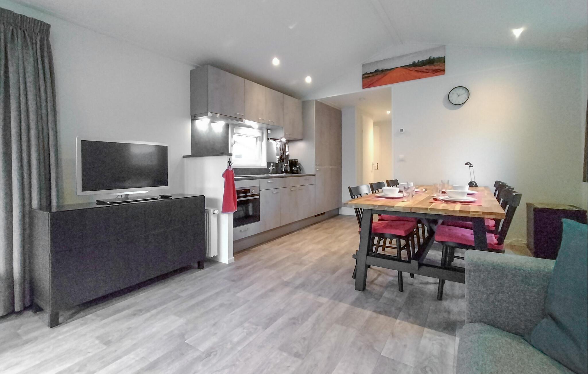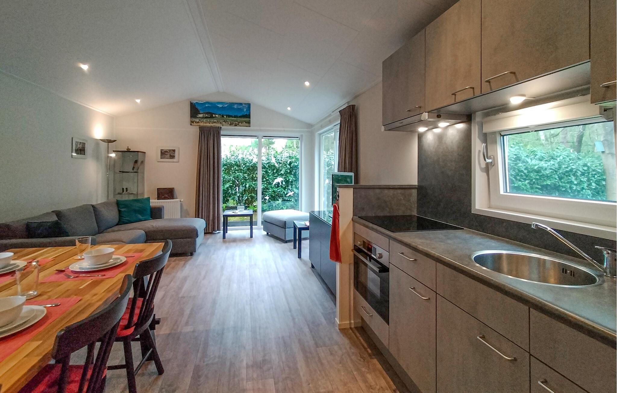 Dieses einladende Ferienhaus befindet sich in einem wunderschön gelegenen Ferienpark und ist ideal für einen erholsamen Urlaub. Das gepflegte Ferienhaus ist schön in warmen und hellen Farben dekoriert. Draußen bietet Ihnen das Ferienhaus einen schönen Garten mit Terrasse und Gartenmöbeln. Das Wohnzimmer mit offener Küche hat einen Ausgang zur Terrasse. Das Ferienhaus verfügt über ein Schlafzimmer und ein Badezimmer mit Dusche und Waschbecken, dazu ein separates WC. Der Schuppen bietet Platz für Fahrräder. Da die schöne Umgebung viele Wandermöglichkeiten bietet, ist dieses Ferienhaus die richtige Wahl für einen Urlaub mit Hunden.