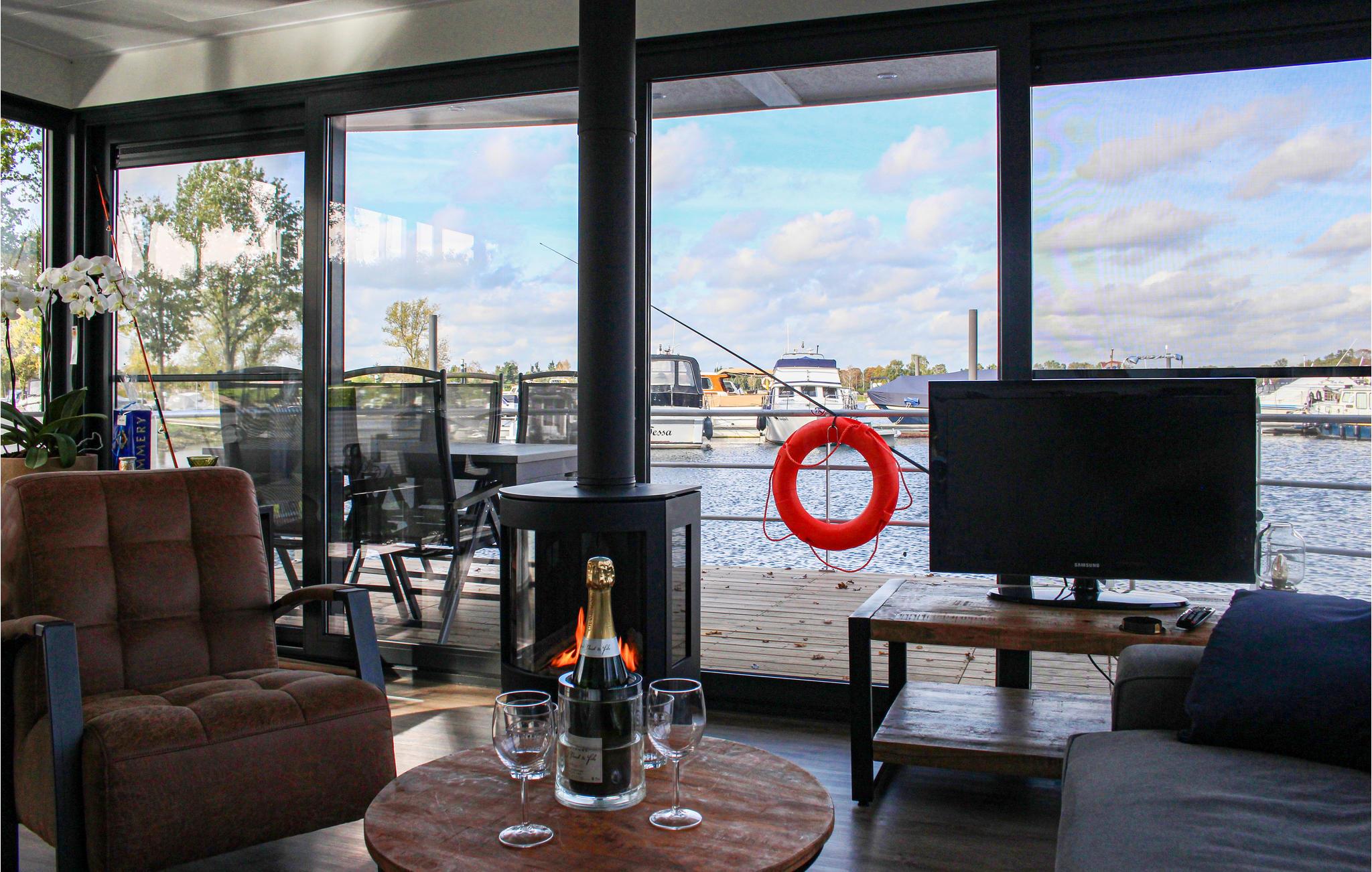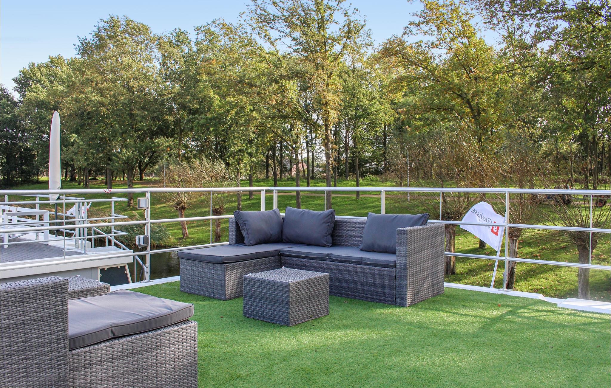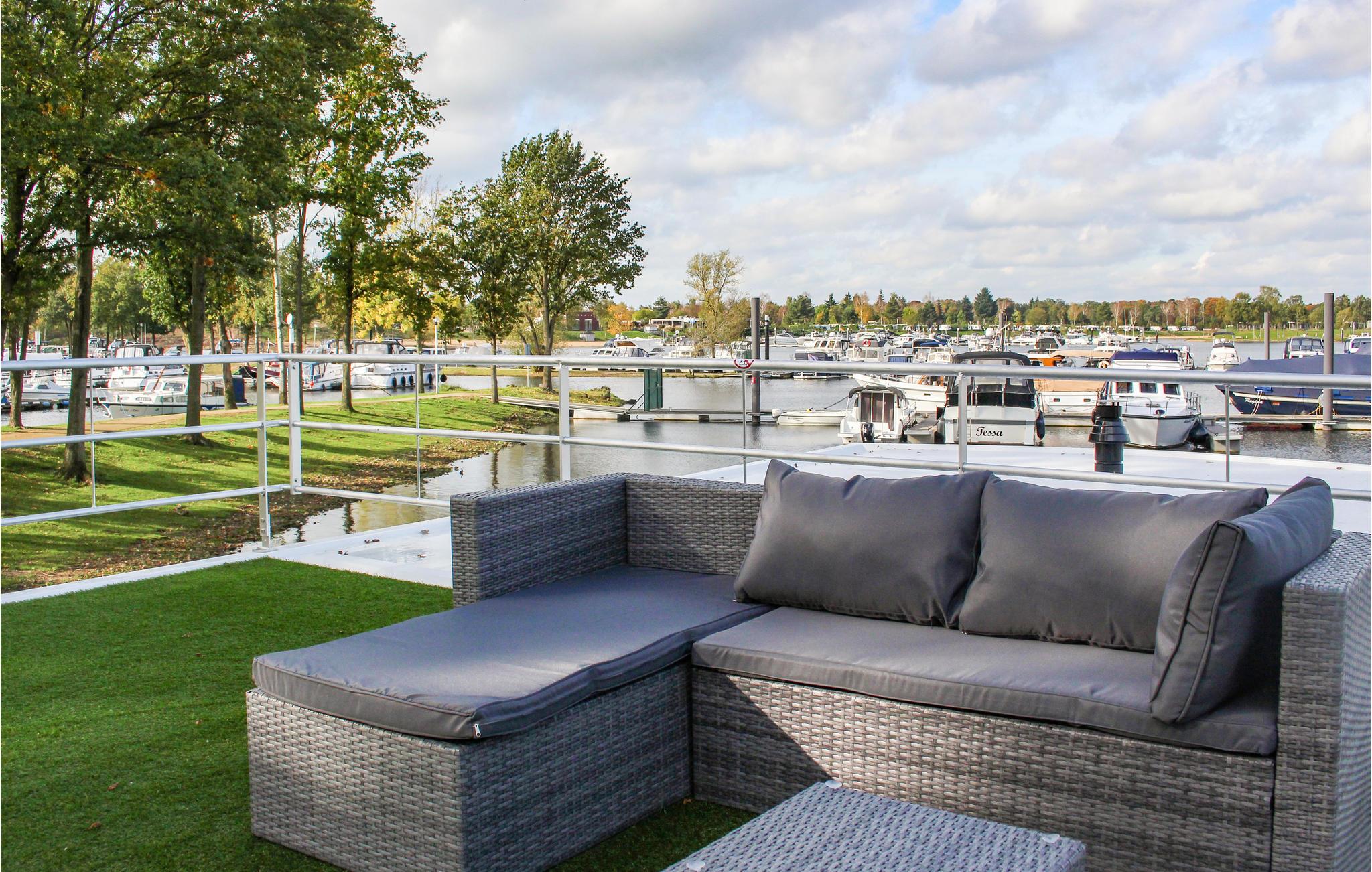 Über den Steg erreichen Sie das Achterdeck des Hausboots, von dem aus Sie durch eine der Türen Zugang zum schwimmenden Haus haben. Durch die großen Schiebetüren im Wohnzimmer können Sie auf das geräumige Vorderdeck gehen. Hier finden Sie einen Gartentisch mit verstellbaren Stühlen, an dem Sie sich entspannen können. Hier können Sie auch über eine Treppe ins Wasser gelangen und eventuell Ihr (kleineres) Boot festmachen. Der Hausbesitzer hat bereits ein SUP und ein Ruderboot zur Miete bereit! Sonnenanbeter werden das große Sonnendeck zu schätzen wissen, das über eine schmale Wendeltreppe erreichbar ist. Hier gibt es ein wunderschönes Lounge-Set, einen Sonnenschirm und einen Gasgrill. Vom Deck aus haben Sie auch einen schönen Blick auf den Yachthafen und den See. Reisen Sie mit kleinen Kindern? Angesichts des Aufenthalts auf und um das Wasser ist es nicht unklug, eine Schwimmweste für die Kleinen mitzubringen.