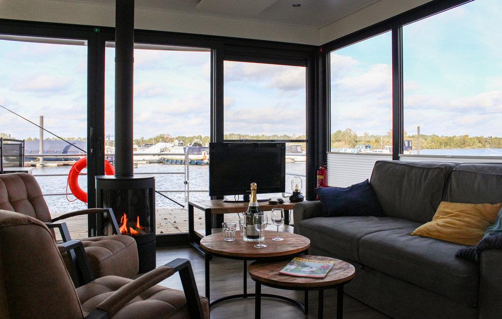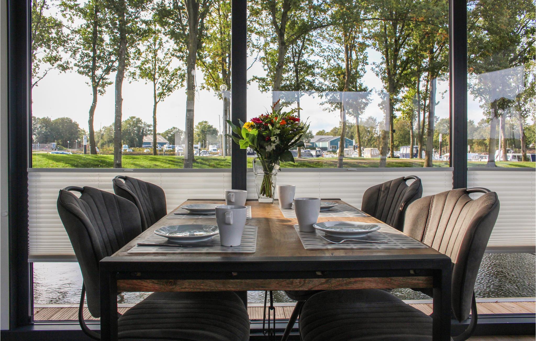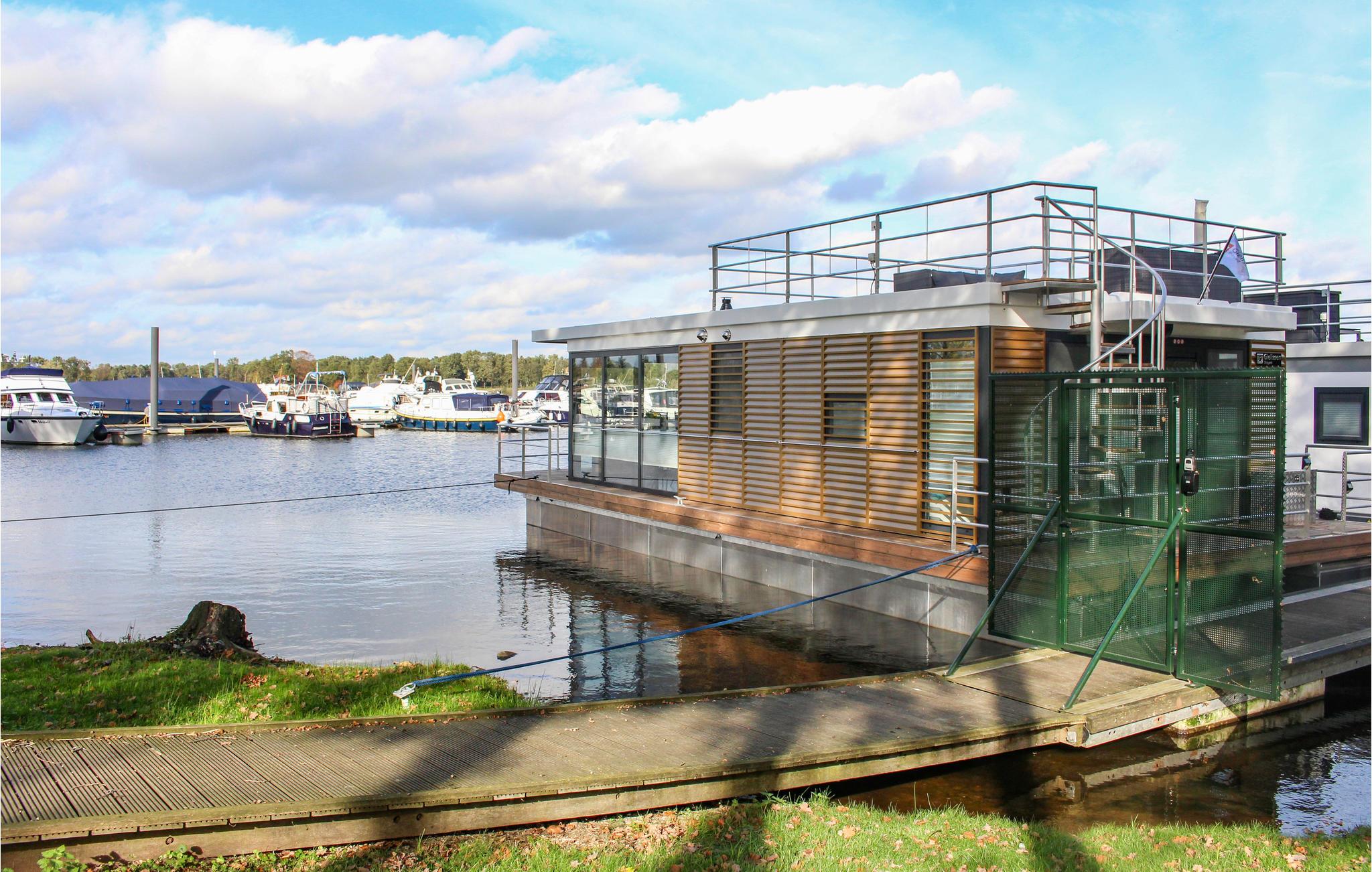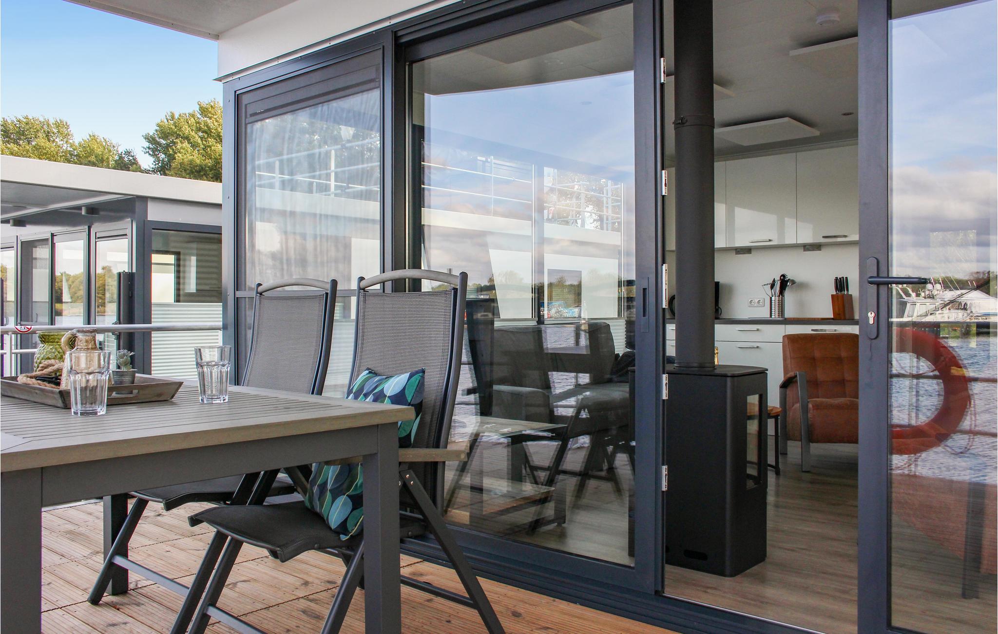 Über den Steg erreichen Sie das Achterdeck des Hausboots, von dem aus Sie durch eine der Türen Zugang zum schwimmenden Haus haben. Durch die großen Schiebetüren im Wohnzimmer können Sie auf das geräumige Vorderdeck gehen. Hier finden Sie einen Gartentisch mit verstellbaren Stühlen, an dem Sie sich entspannen können. Hier können Sie auch über eine Treppe ins Wasser gelangen und eventuell Ihr (kleineres) Boot festmachen. Der Hausbesitzer hat bereits ein SUP und ein Ruderboot zur Miete bereit! Sonnenanbeter werden das große Sonnendeck zu schätzen wissen, das über eine schmale Wendeltreppe erreichbar ist. Hier gibt es ein wunderschönes Lounge-Set, einen Sonnenschirm und einen Gasgrill. Vom Deck aus haben Sie auch einen schönen Blick auf den Yachthafen und den See. Reisen Sie mit kleinen Kindern? Angesichts des Aufenthalts auf und um das Wasser ist es nicht unklug, eine Schwimmweste für die Kleinen mitzubringen.
