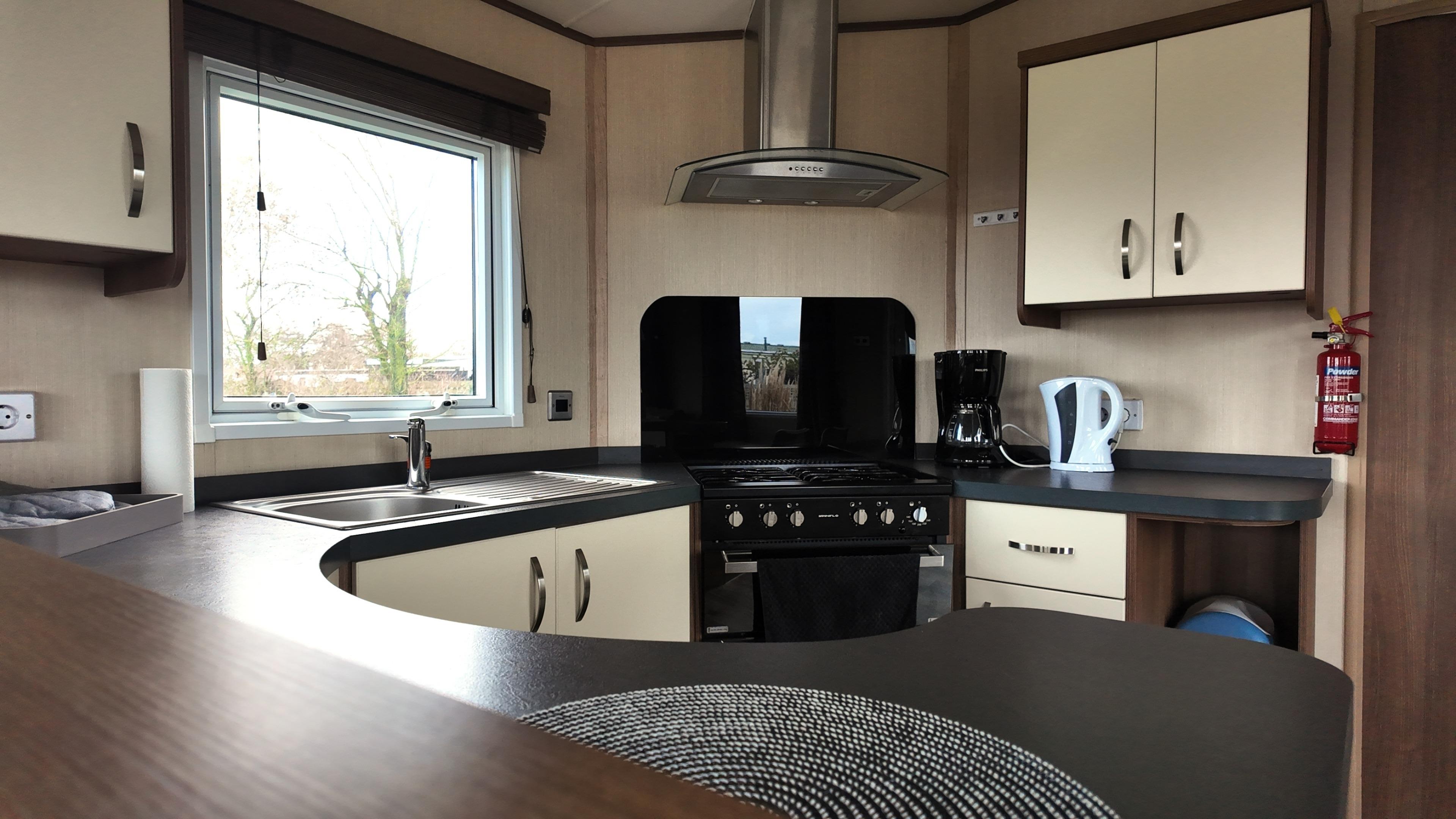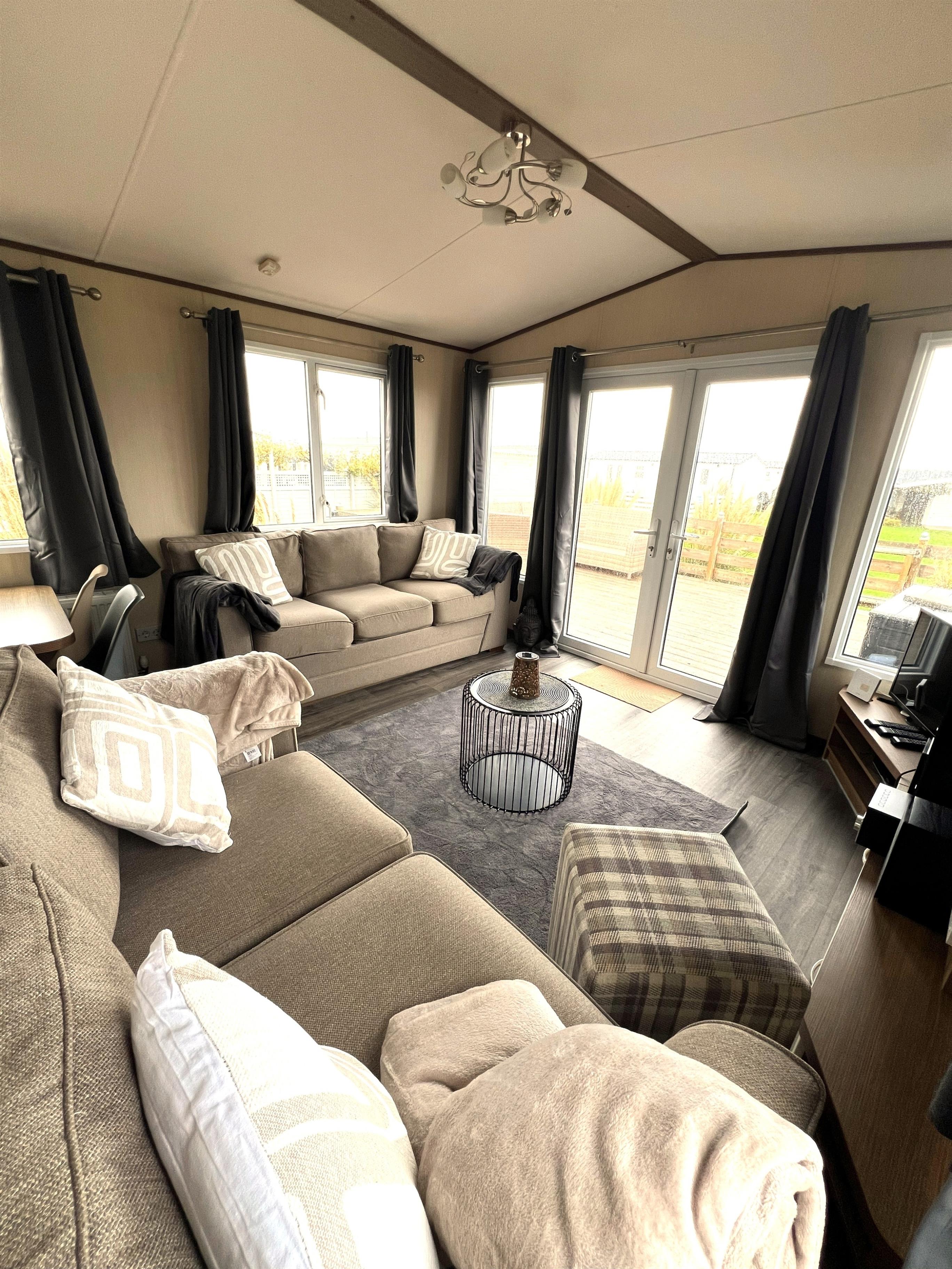 Dieses charmante Chalet im stilvollen Retro-Look ist vollständig ausgestattet und bietet alles, was du für einen komfortablen Aufenthalt benötigst. Im Wohnbereich erwarten dich eine gemütliche Sitzecke zum entspannten Ausklingen des Abends, einen funktionalen Esstisch sowie eine große, voll ausgestattete Küche. Für kühle Tage sorgen eine Zentralheizung sowie ein elektrischer Kamin für wohlige Wärme.