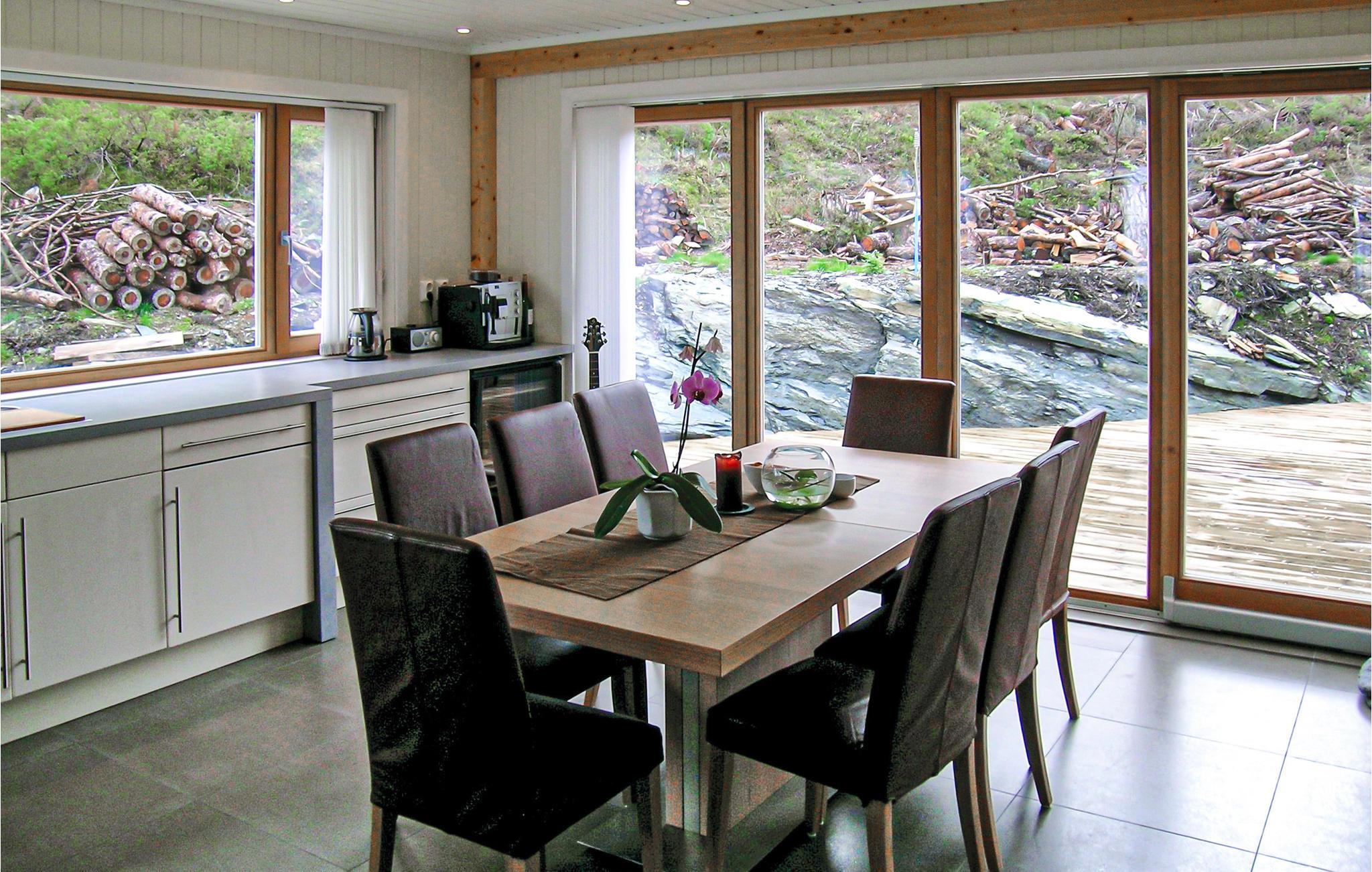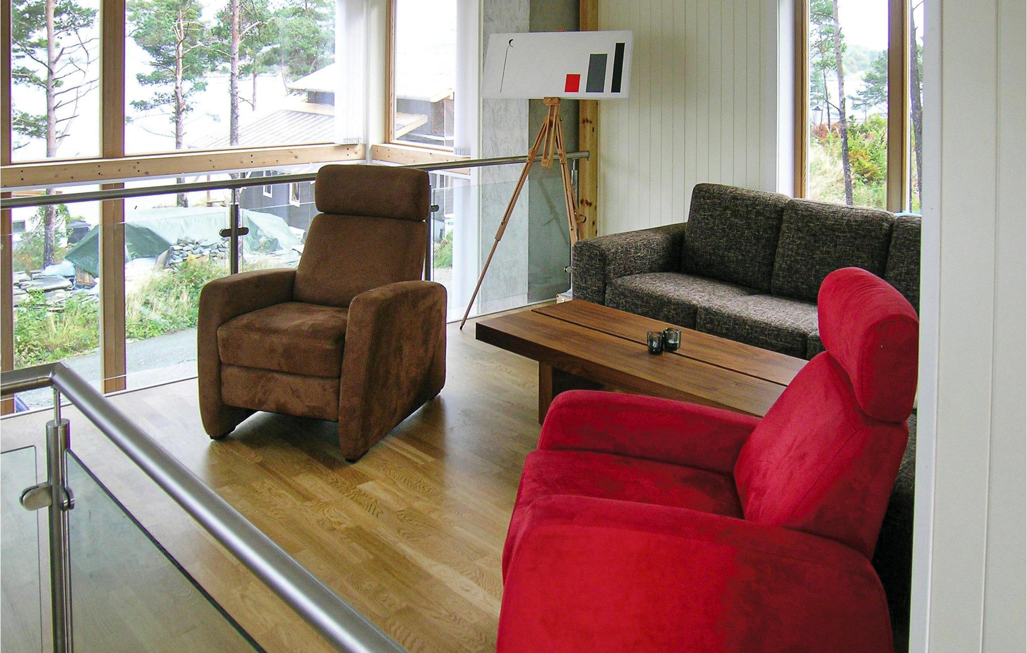 Modernes Ferienhaus in Mosterhamn, nur 50 m vom Fjord gelegen, welcher prima Verhältnisse zum Angeln und Tauchen anbietet. Es stehen Ihnen eine sonnige Terrasse, ein großer Gasgrill, Tube und Wasserski zur Verfügung. 2 Golfplätze in der Nähe. Schönes Wandergebiet mit der Spitze Siggjo (474 M.ü.N.N.). Mehrere Sehenswürdigkeiten in der Region, u.a. Mosterhamn mit der Alten Moster Kirche und Moster Amfi. Besuchen Sie Leirvik (20 Automin.) mit dem Heimatmuseum, Fußgängerzone und Restaurants. Nach 45 Autominuten erreichen Sie die Stadt Haugesund. Sonst empfehlen wir eine Tagesausflug nach Bergen sowie eine Rundfahrt durch Hardanger.