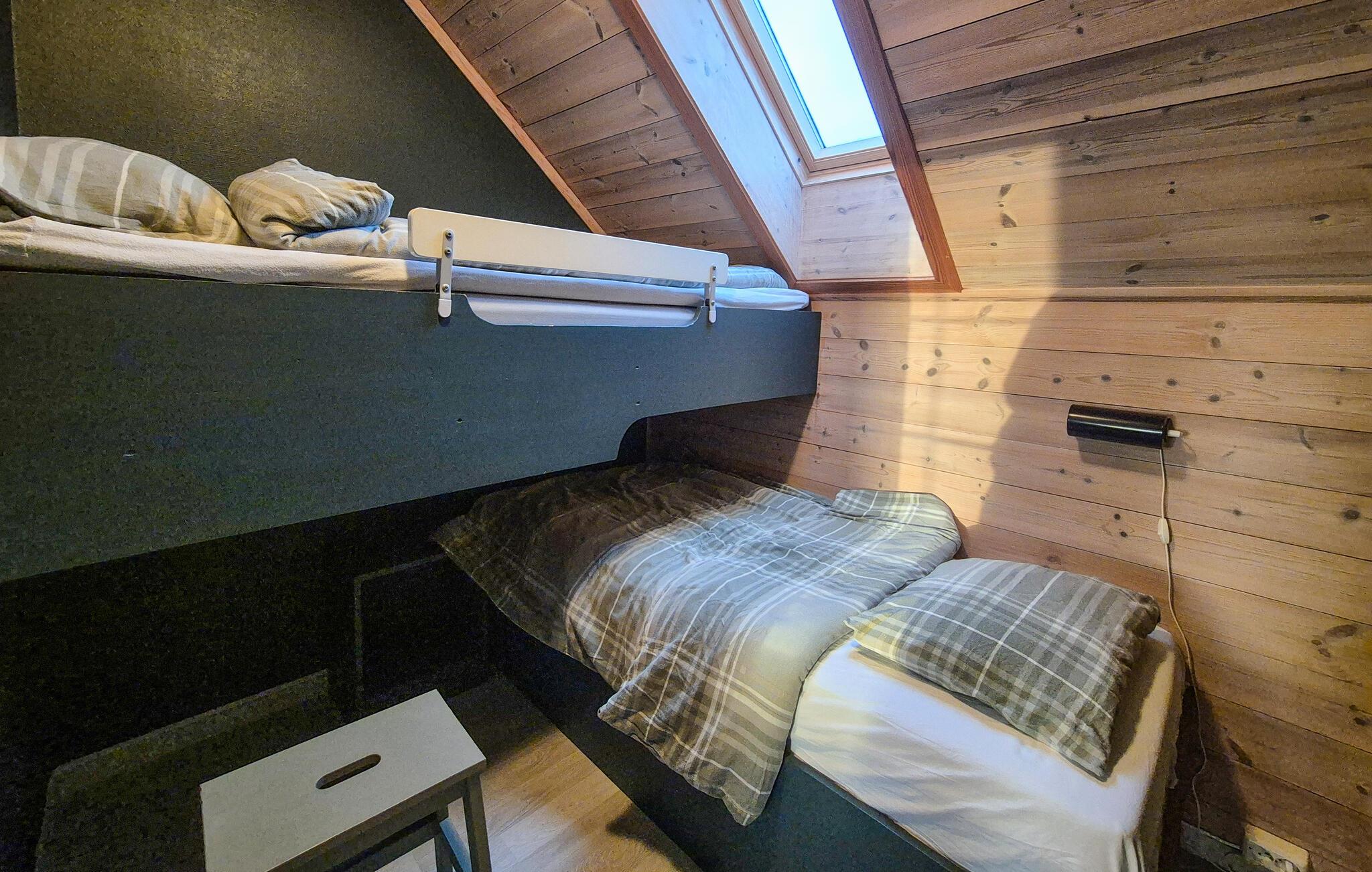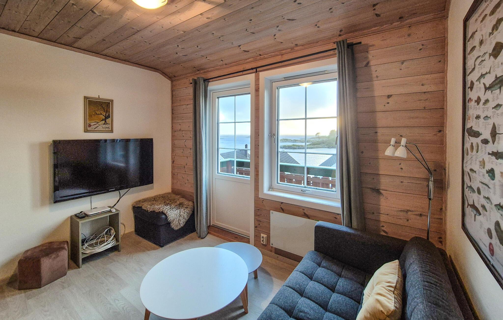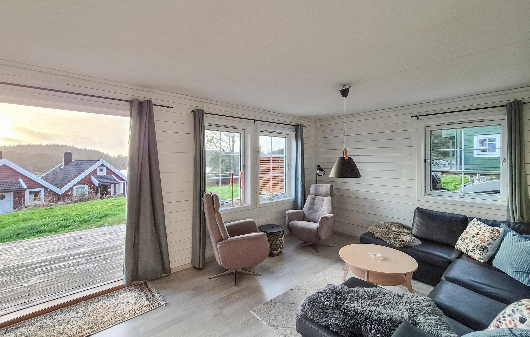 Dieses idyllisch gelegene Ferienhaus bietet mit seinen großen Fenstern einen wunderschönen Blick auf das Wasser und lässt viel Tageslicht herein. Lehnen Sie sich auf dem gemütlichen Sofa mit einer Decke und einem guten Buch zurück oder lassen Sie den Blick über die ruhige Landschaft schweifen. Nach einem Tag in der Natur können Sie hier entspannen, den Sonnenuntergang genießen oder einfach in wohliger Atmosphäre zur Ruhe kommen.
