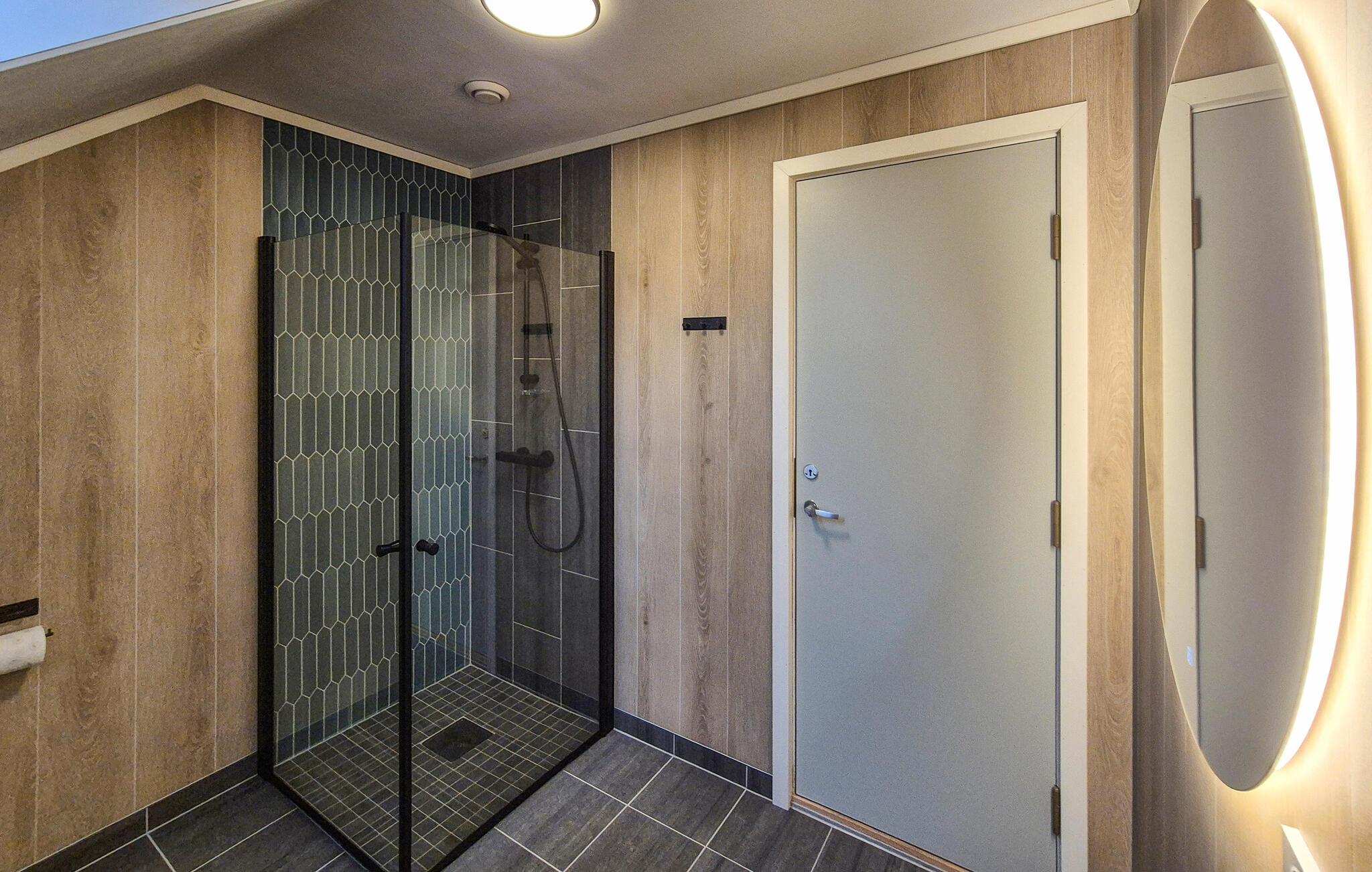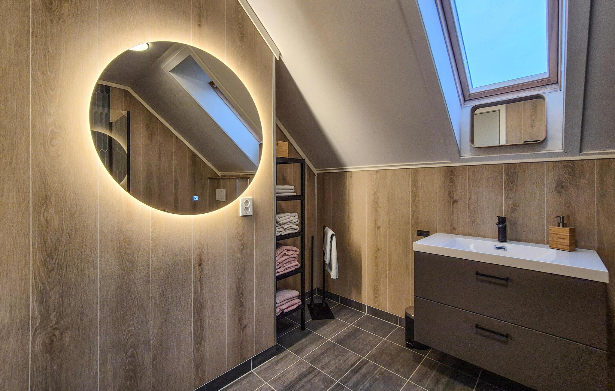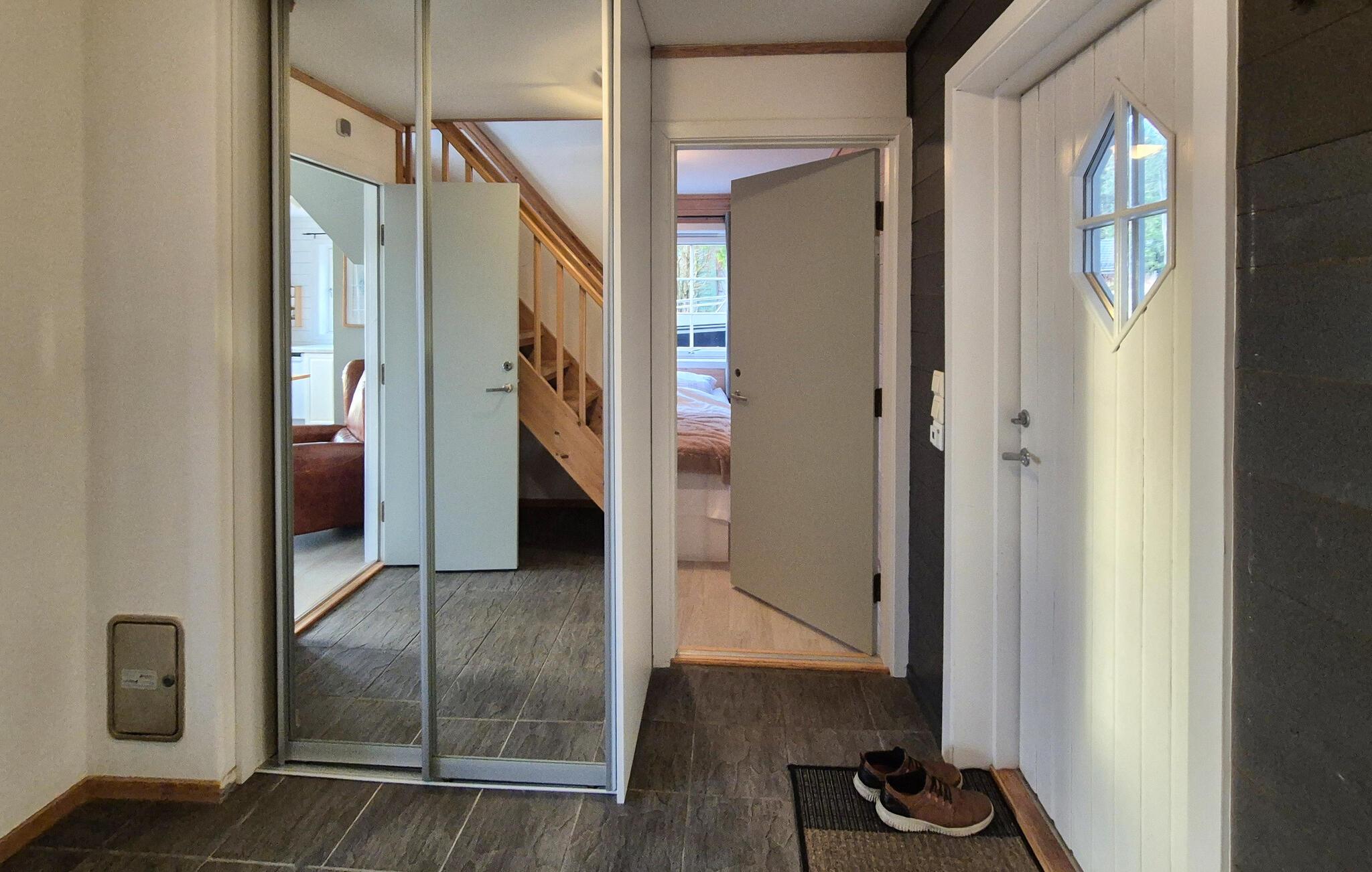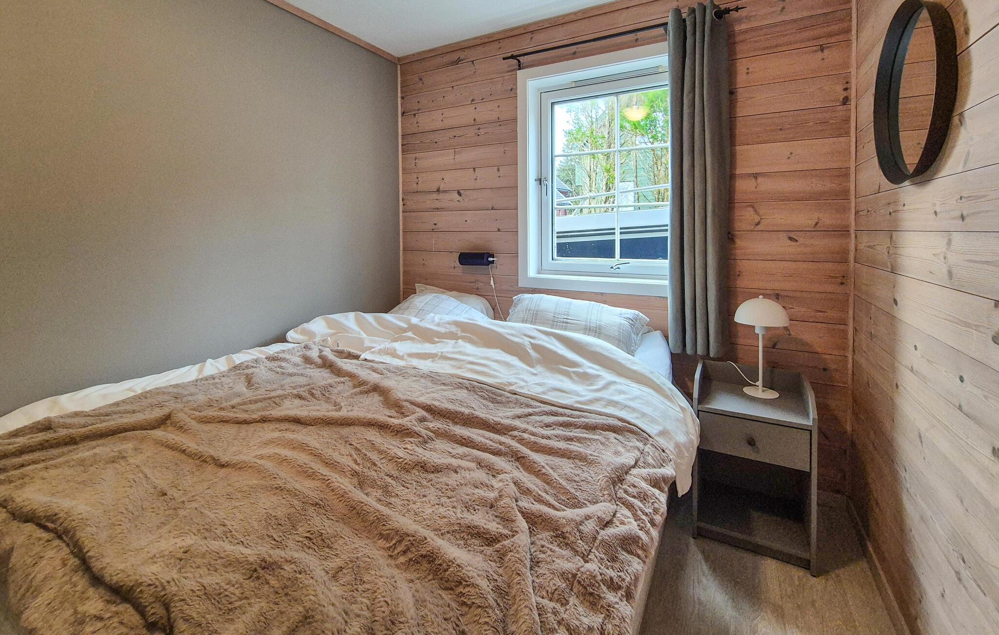 Dieses idyllisch gelegene Ferienhaus bietet mit seinen großen Fenstern einen wunderschönen Blick auf das Wasser und lässt viel Tageslicht herein. Lehnen Sie sich auf dem gemütlichen Sofa mit einer Decke und einem guten Buch zurück oder lassen Sie den Blick über die ruhige Landschaft schweifen. Nach einem Tag in der Natur können Sie hier entspannen, den Sonnenuntergang genießen oder einfach in wohliger Atmosphäre zur Ruhe kommen.